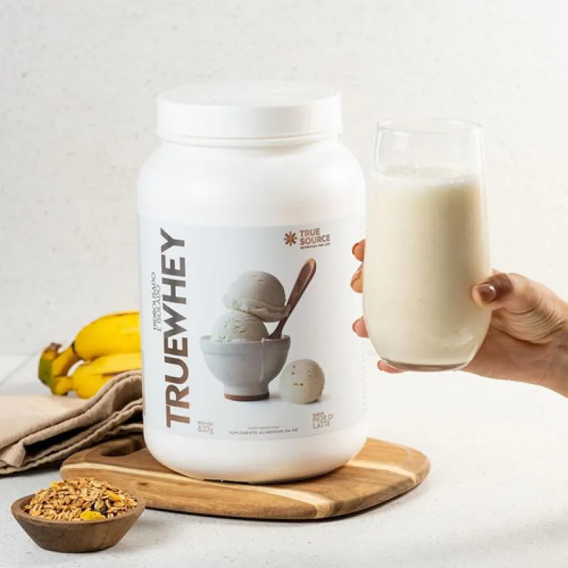 O True Whey Fior di Latte 837g da True Source é um suplemento proteico premium formulado com blend de proteínas isolada e hidrolisada do soro do leite. Sua proposta une desempenho e sabor delicado inspirado no tradicional gelato italiano. Inclui peptídeos de colágeno Verisol®, que agregam valor funcional à fórmula.