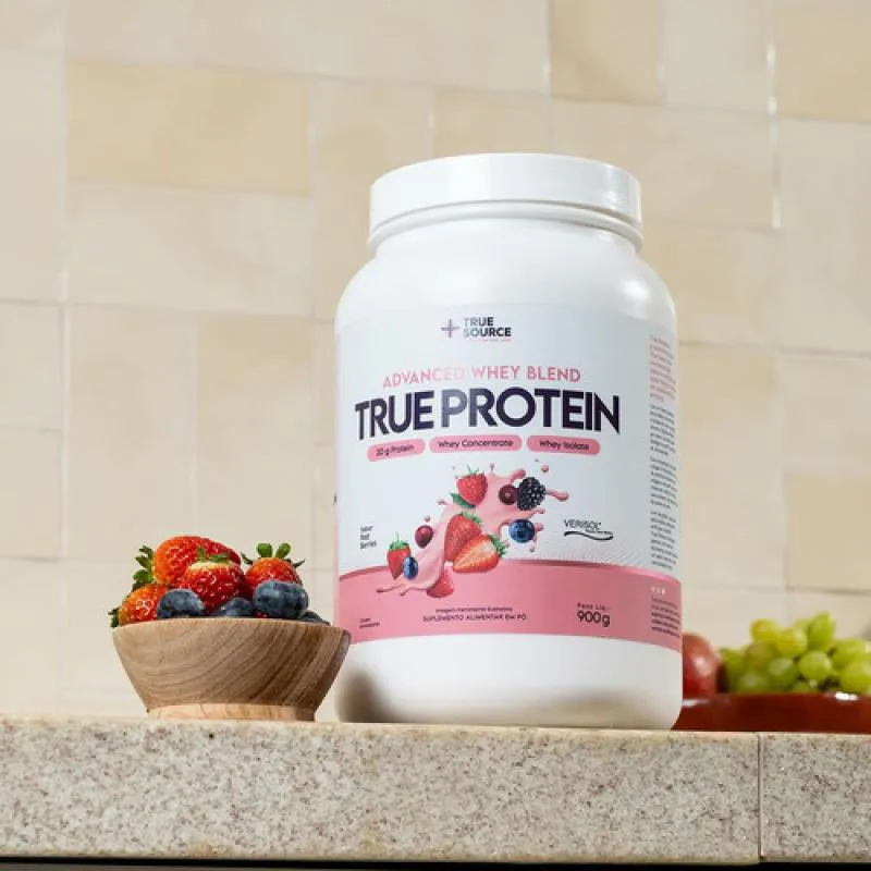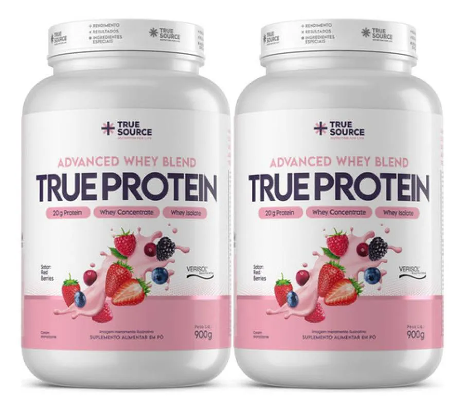 O True Whey Red Berries da True Source é um suplemento proteico em pó sabor frutas vermelhas (Red Berries), desenvolvido com um blend avançado que combina proteína de soro do leite concentrada, proteína isolada e colágeno hidrolisado (VERISOL®).