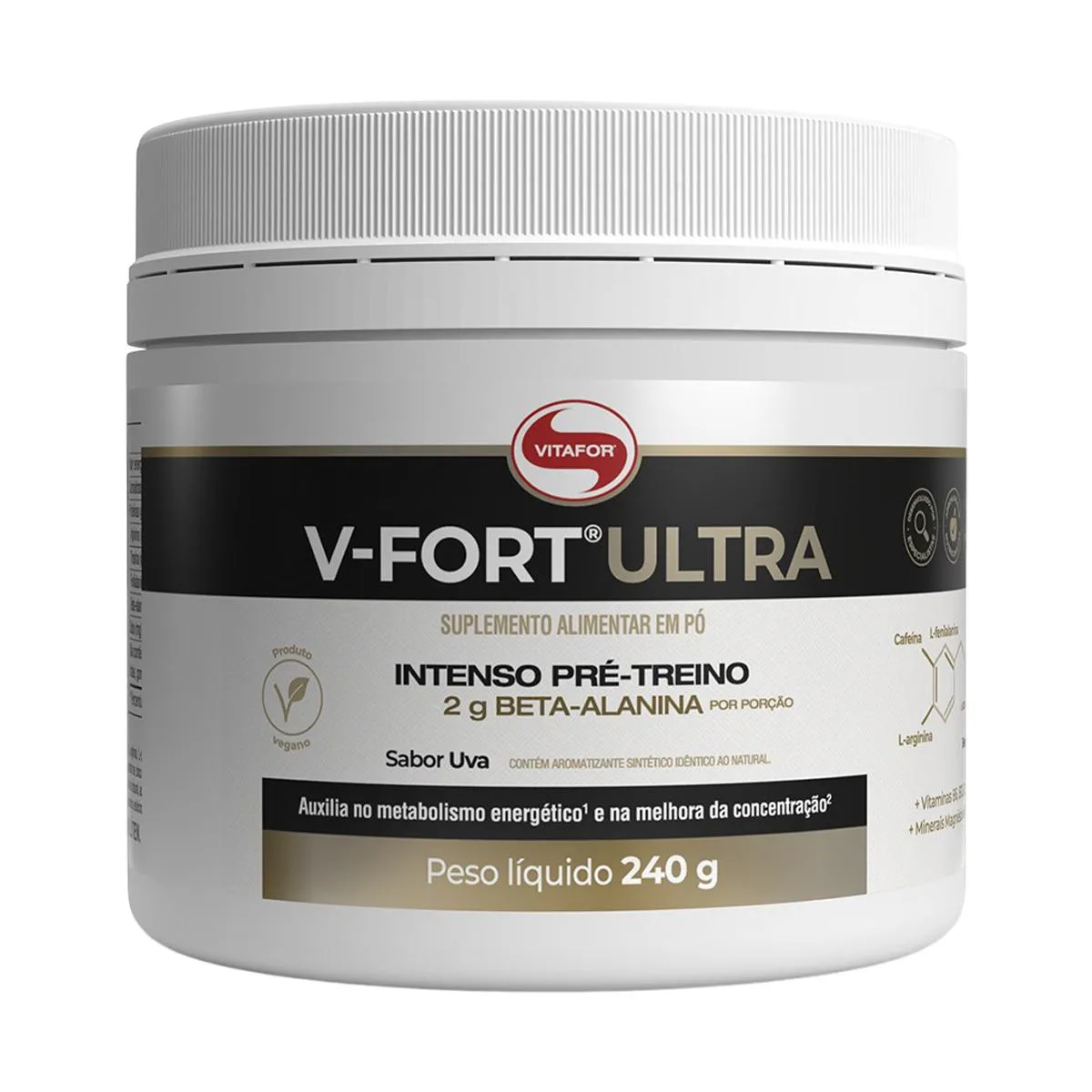 Kit 2 V Fort Ultra Vitafor 240g Uva V-FORT ULTRA é um suplemento alimentar composto de aminoácidos, vitaminas e minerais. Diferenciais: - Fácil solubilidade.