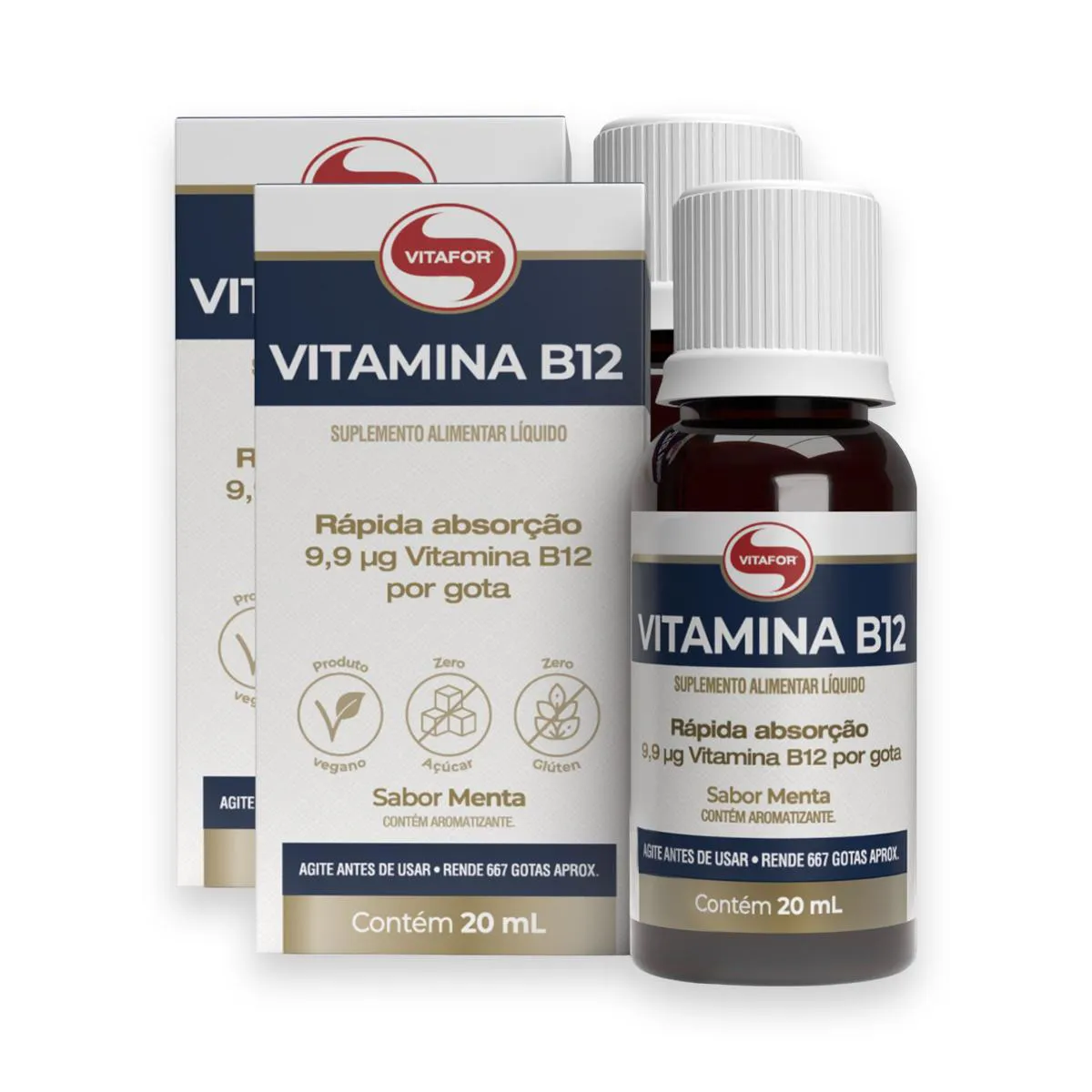 Kit 2 Vitamina B12 Vitafor 20ml Menta VITAMINA B12 Vitafor é a apresentação da vitamina B12 (metilcobalamina), com alta concentração por gota. Diferenciais: - Alta concentração de vitamina B12 por gota.
