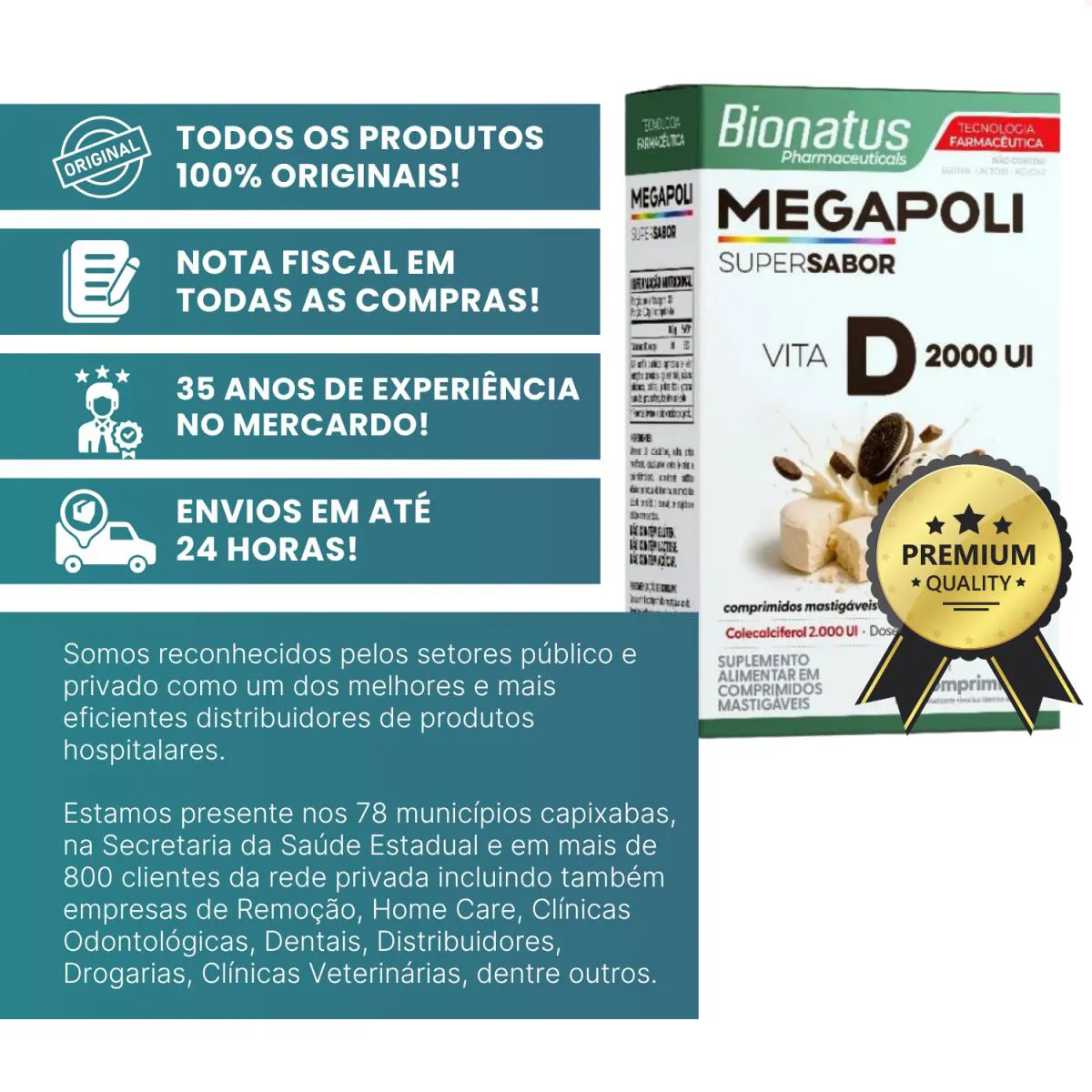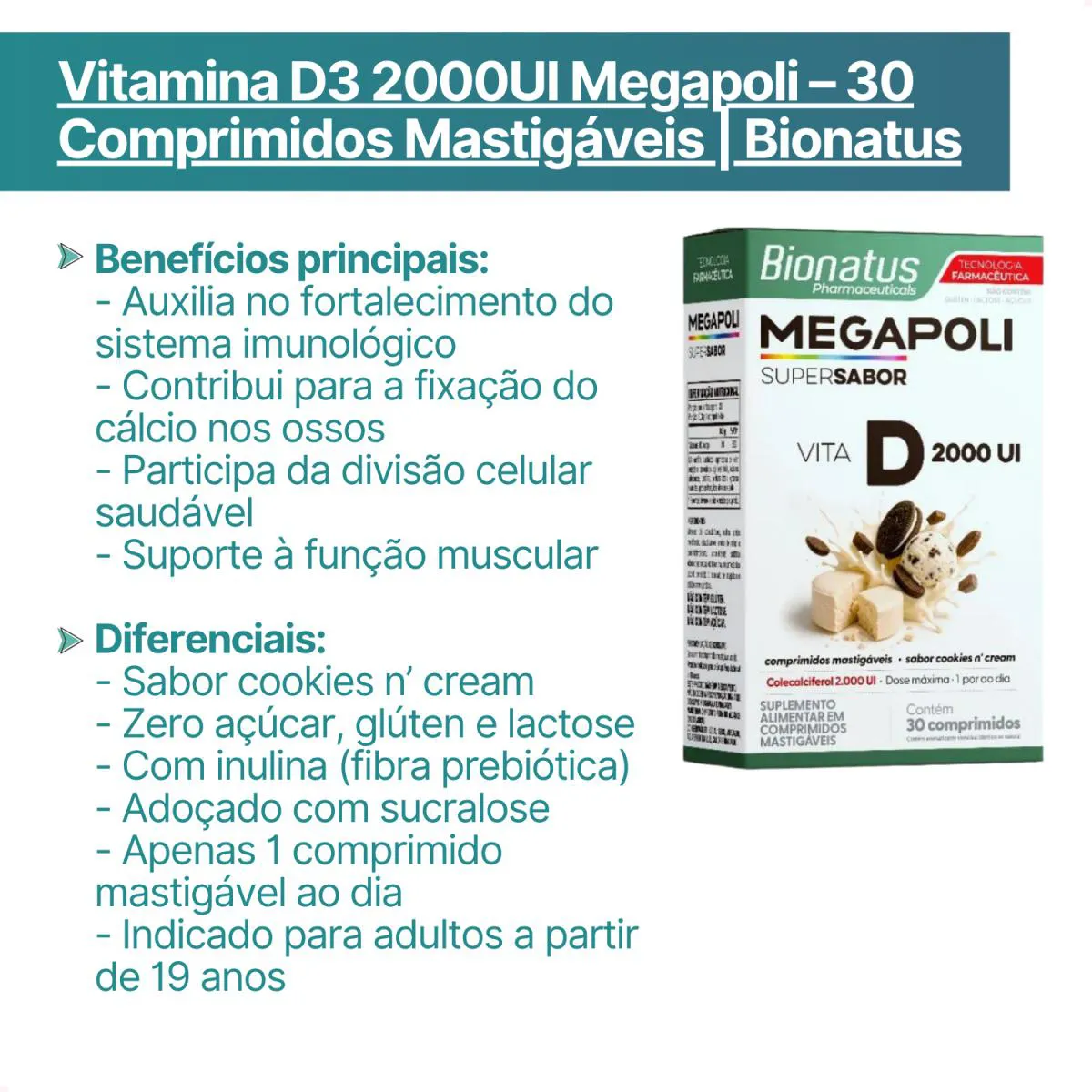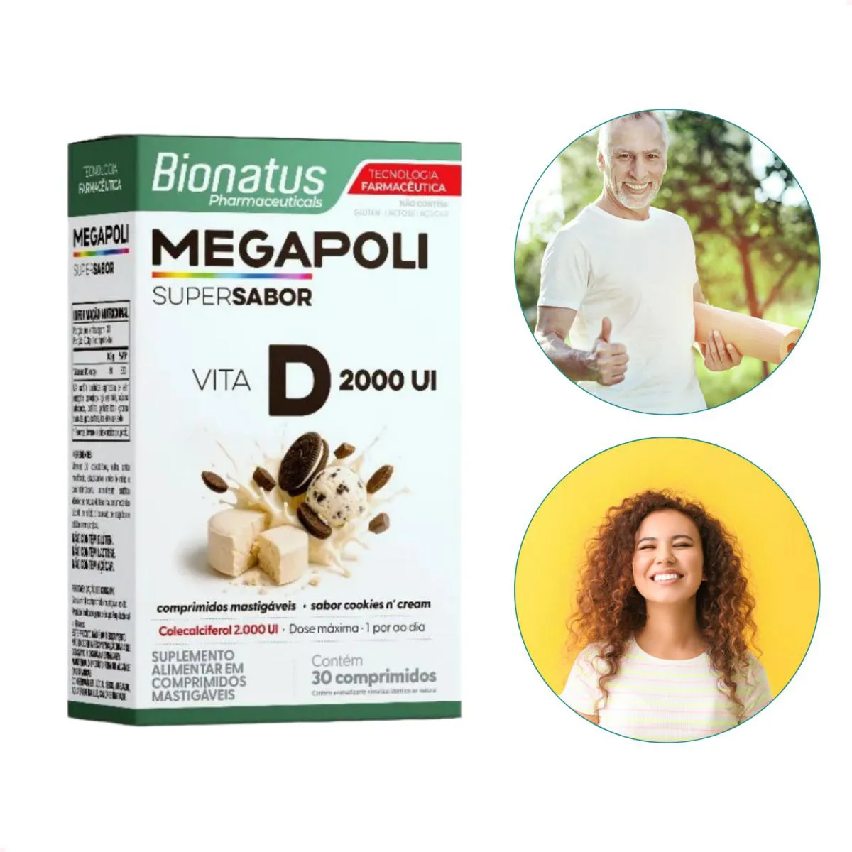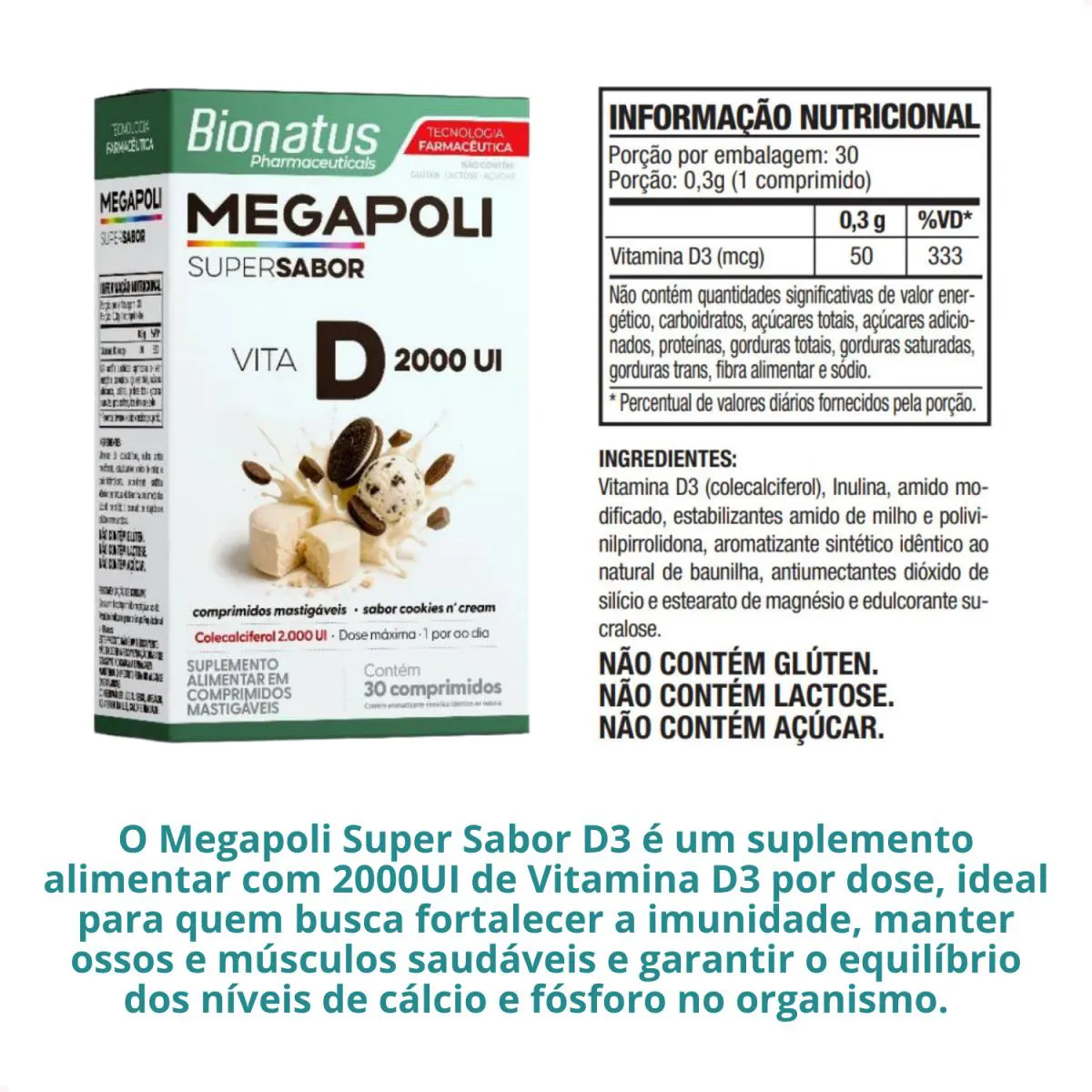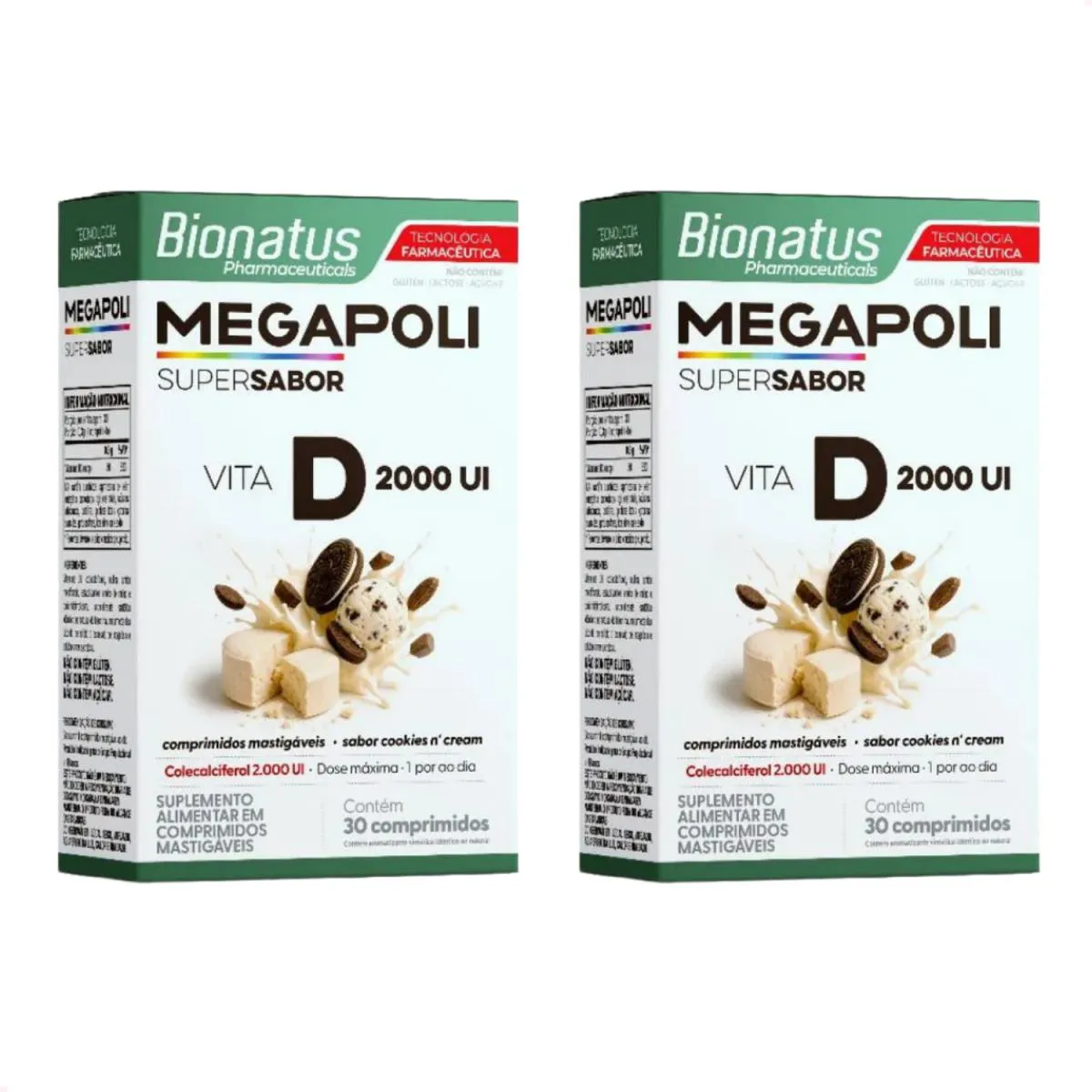 Kit com 2 - Vitamina D3 2000UI Megapoli ? 30 Comprimidos Mastigáveis | Bionatus