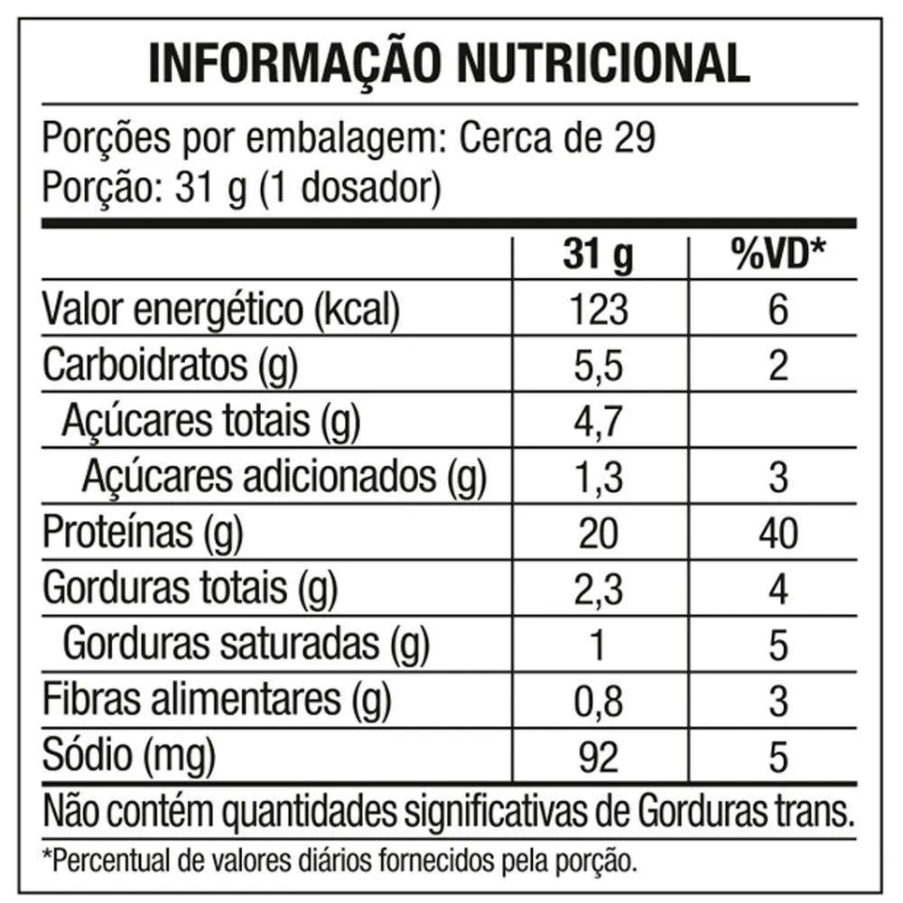 - Contém proteína concentrada, isolada e hidrolisada.
