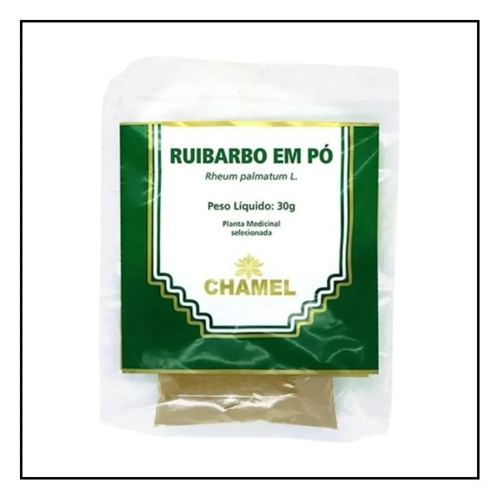 - Pó de ruibarbo para preparo de chá por infusão.