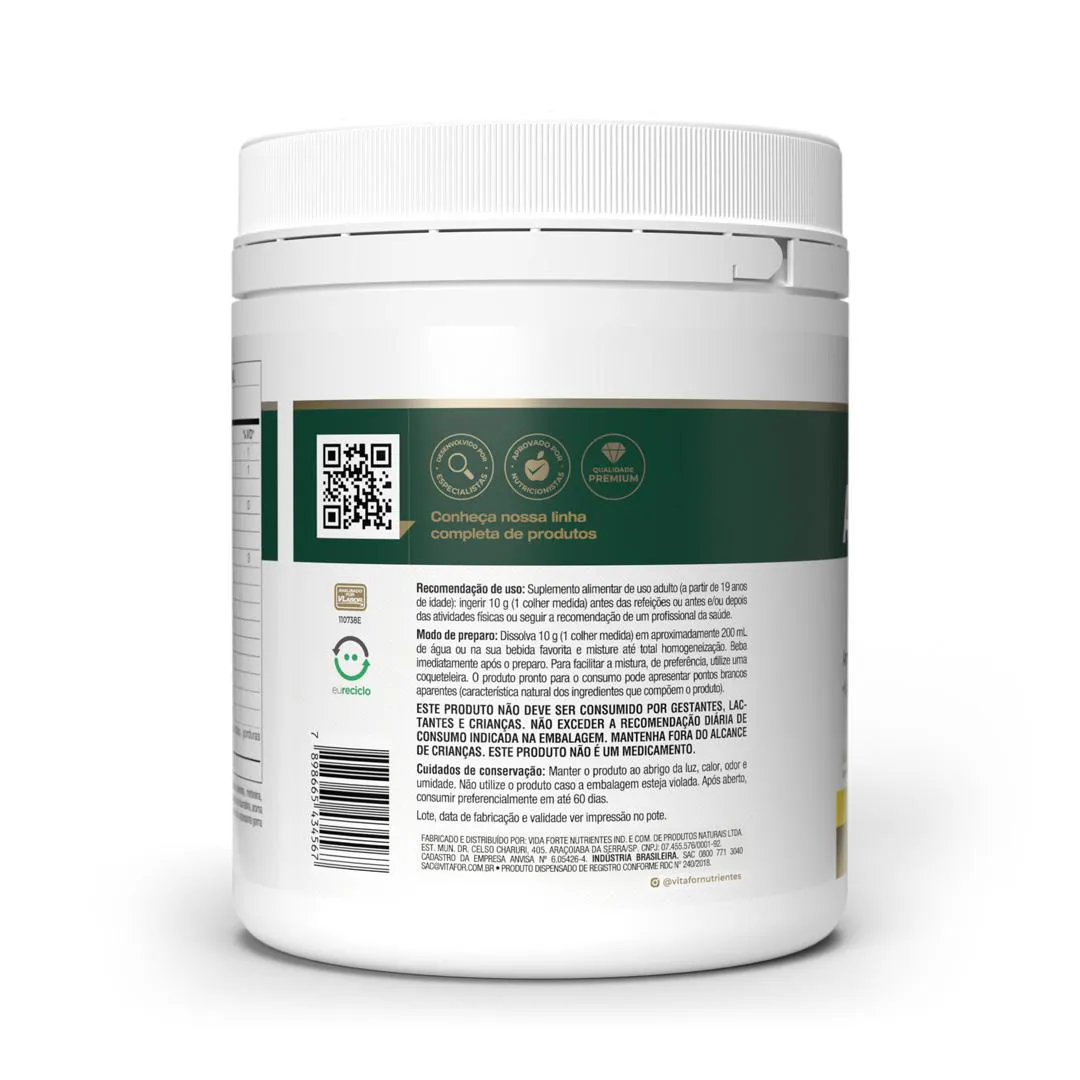 - Suplemento com 9 aminoácidos essenciais vegetais.