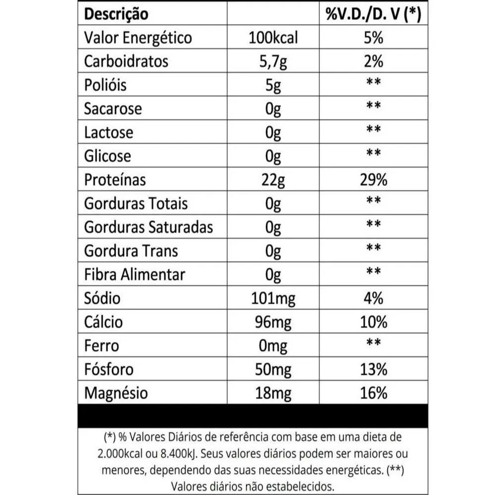 - Sem açúcar, glúten ou lactose.