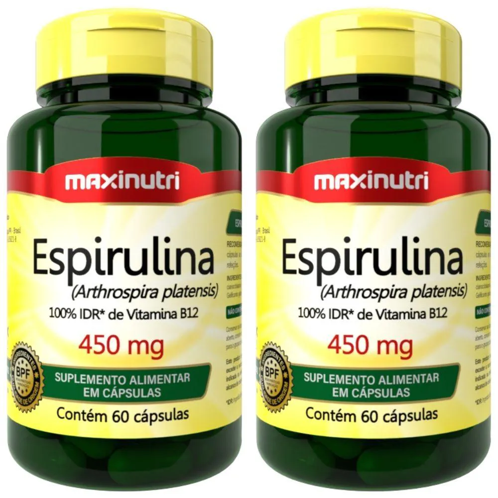 KIT com 2 unidades de Espirulina 450mg da marca Maxinutri com 60 cápsulas cada.