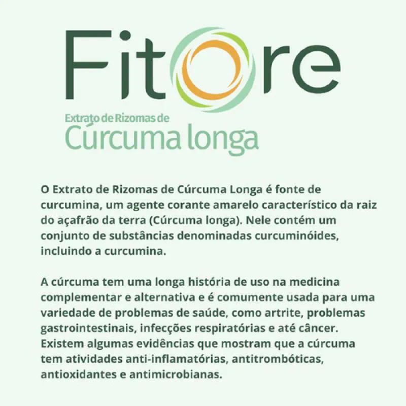 O Extrato de Rizomas de Cúrcuma Longa é fonte de curcumina, um agente corante amarelo característico da raiz do açafrão da terra (Cúrcuma longa). Nele contém um conjunto de substâncias denominadas curcuminóides, incluindo a curcumina.