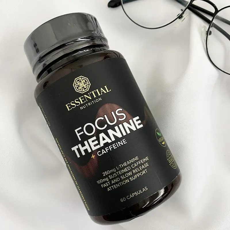 O Focus Theanine + Caffeine Essential Nutrition é uma combinação inteligente e inovadora de L-teanina com cafeína microencapsulada de liberação imediata e gradual que proporciona um efeito sustentado por até 5h, sem caffeine crash.