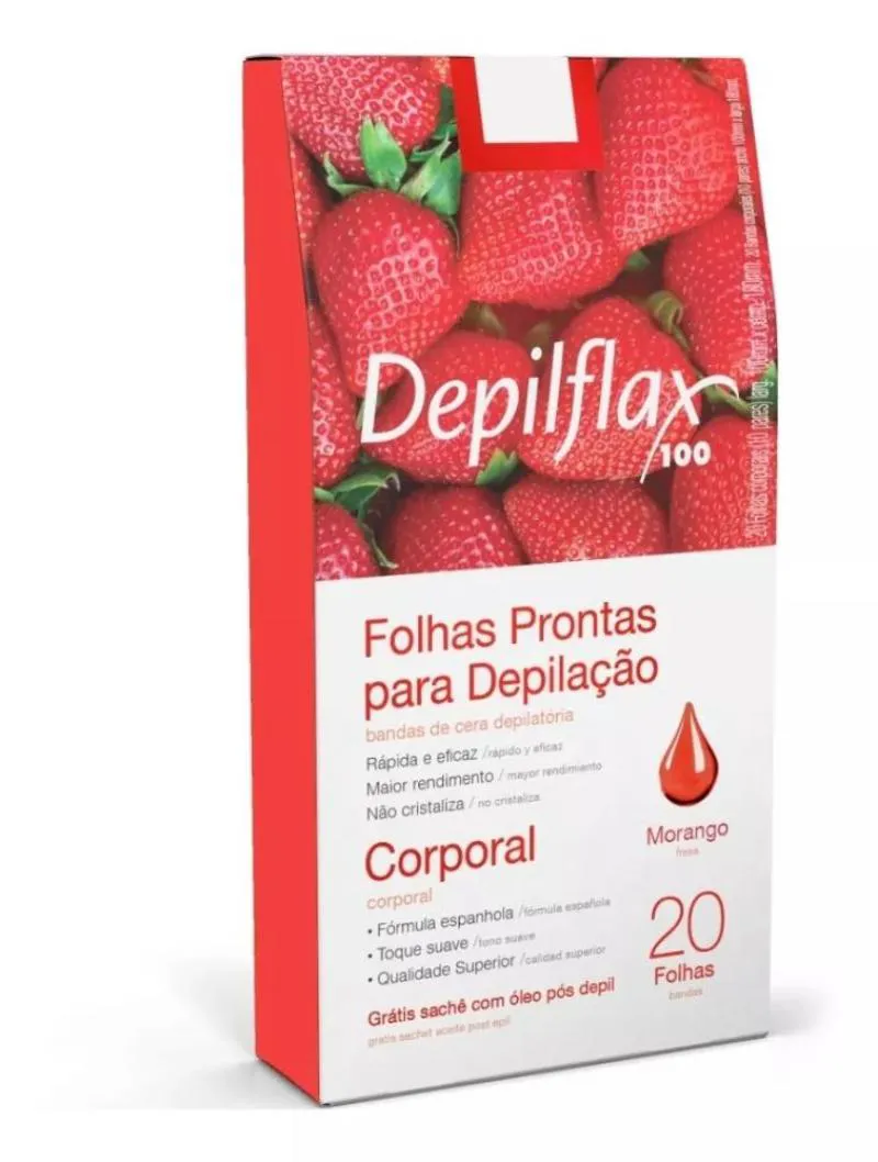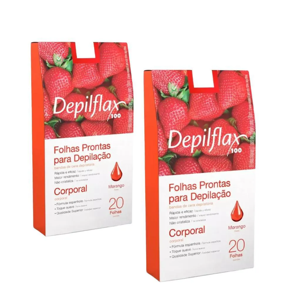 Kit 2X Folhas Prontas Corporais C/ 20 Uni. Morango Depilflax