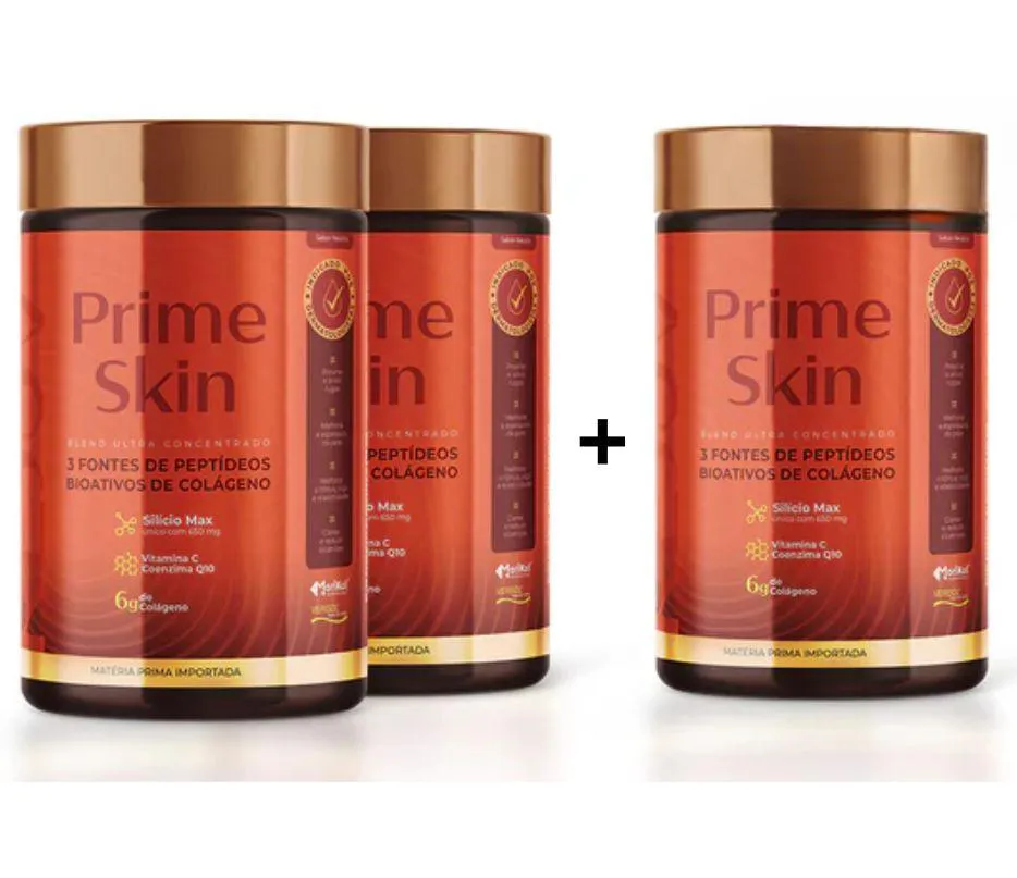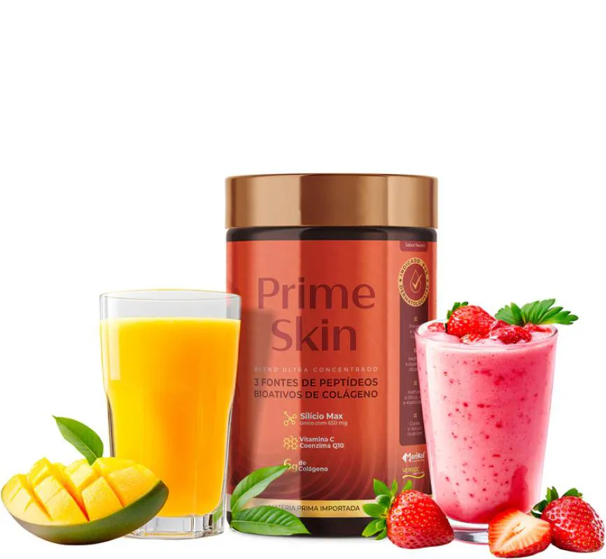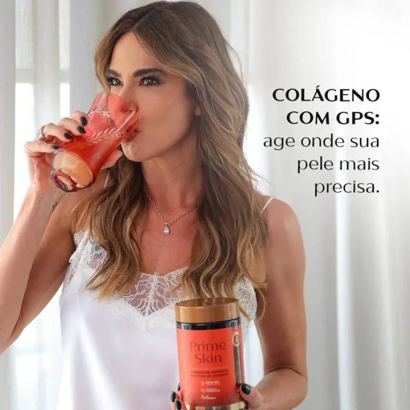 O Prime Skin é formulado com peptídeos bioativos de colágeno altamente biodisponíveis, que atuam como um GPS, direcionando suas moléculas com precisão para onde sua pele realmente necessita de regeneração. Isso acontece porque sua fórmula conta com Verisol® e Morikol®, colágenos de última geração que já estão “prontos para uso” pelo organismo, garantindo absorção eficiente e ação direcionada.