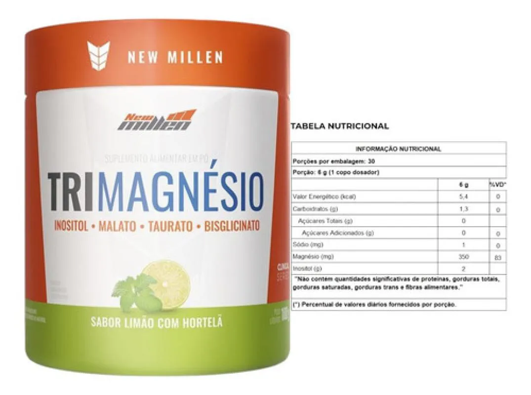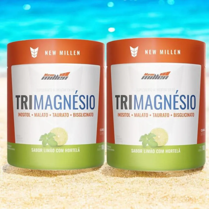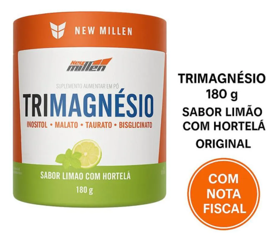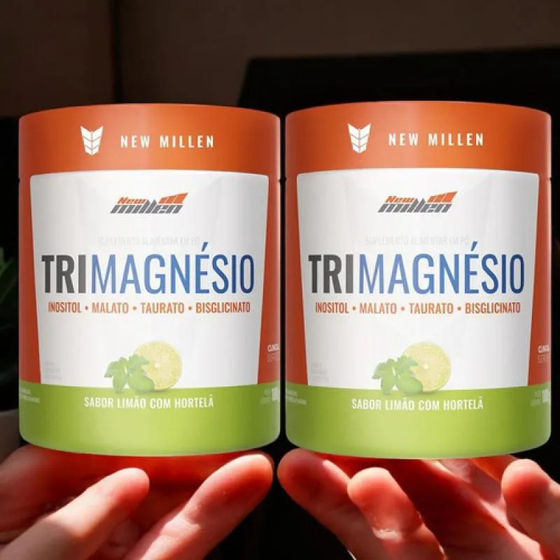 O Trimagnésio da New Millen combina três formas de magnésio de alta absorção: malato, taurato e bisglicinato, além de conter inositol, oferecendo suporte completo para sua saúde diária.