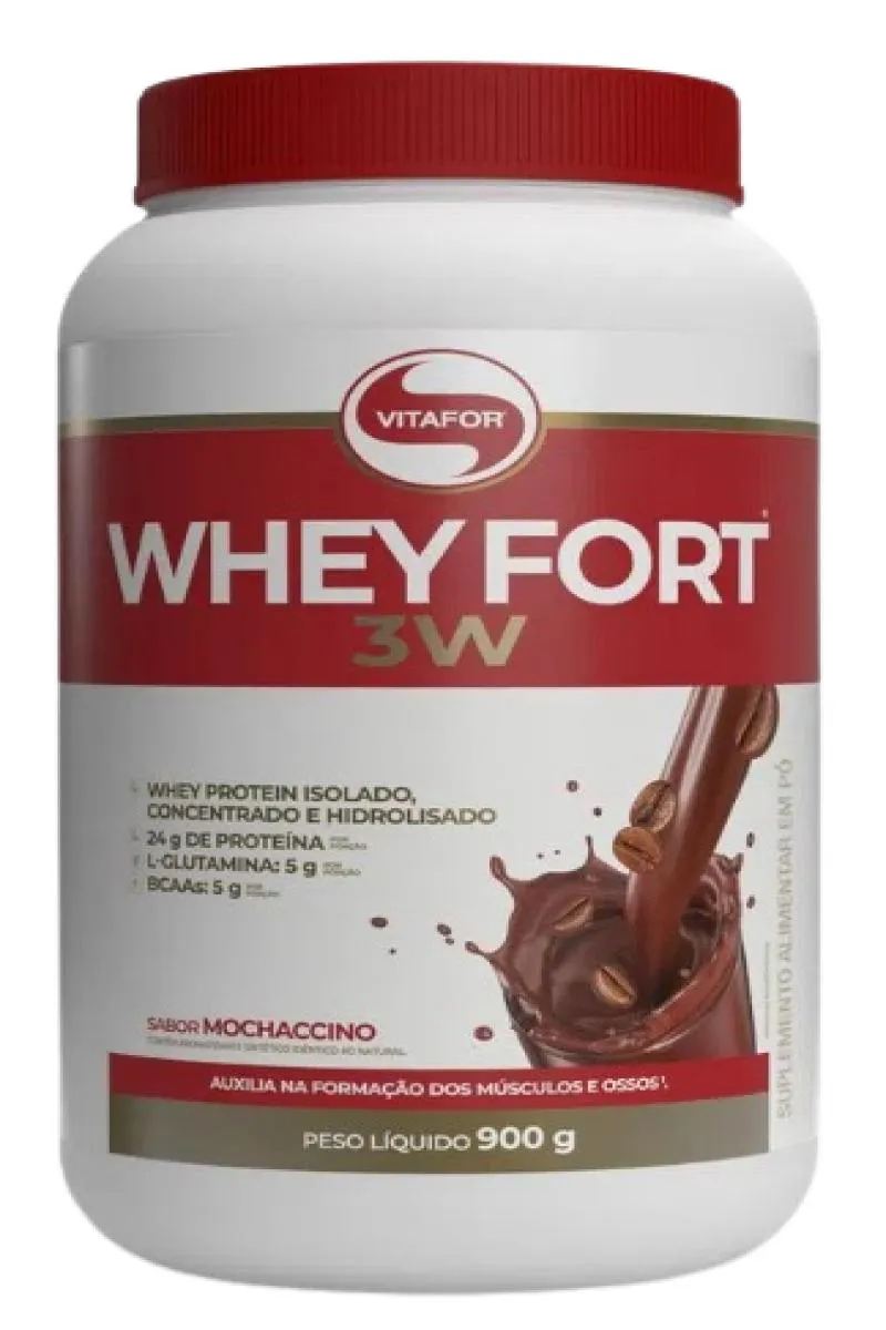 O Whey Fort 3W Mochaccino Vitafor 900g é um suplemento alimentar com base em uma combinação estratégica de 3 tipos de proteína (concentrada, isolada e hidrolisada).