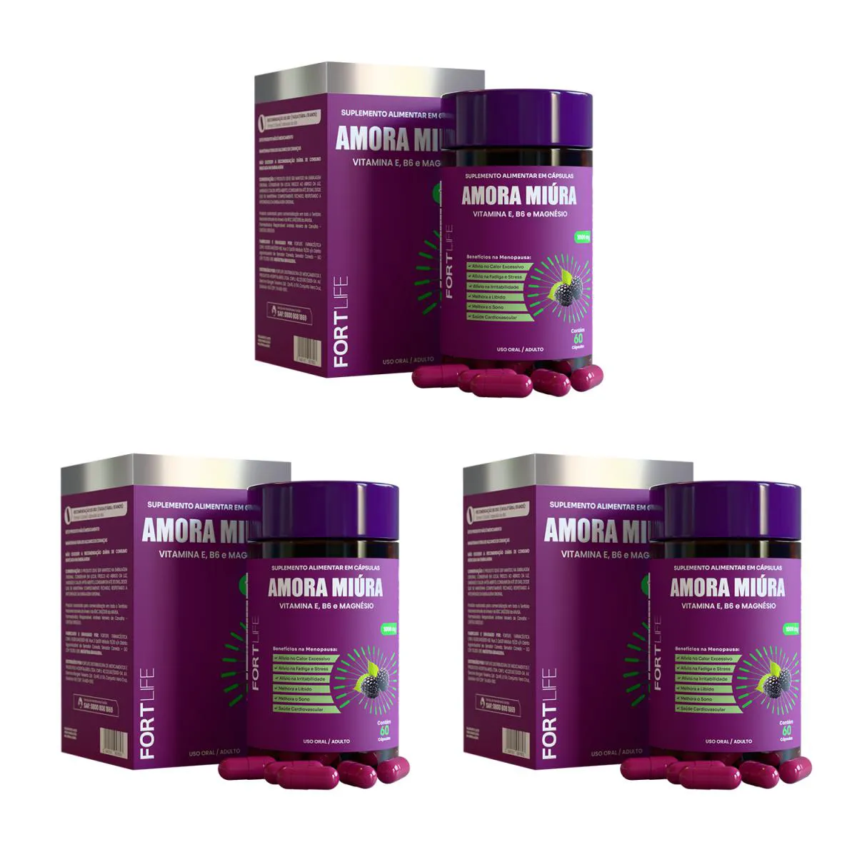 Kit 3 Amora Miúra 1000Mg Fortlife 60 Cápsulas