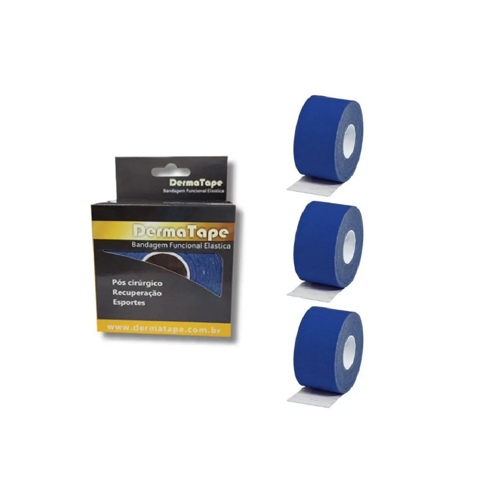 Kit 3 Bandagem Funcional Elástica Derma Tape Bioland Azul