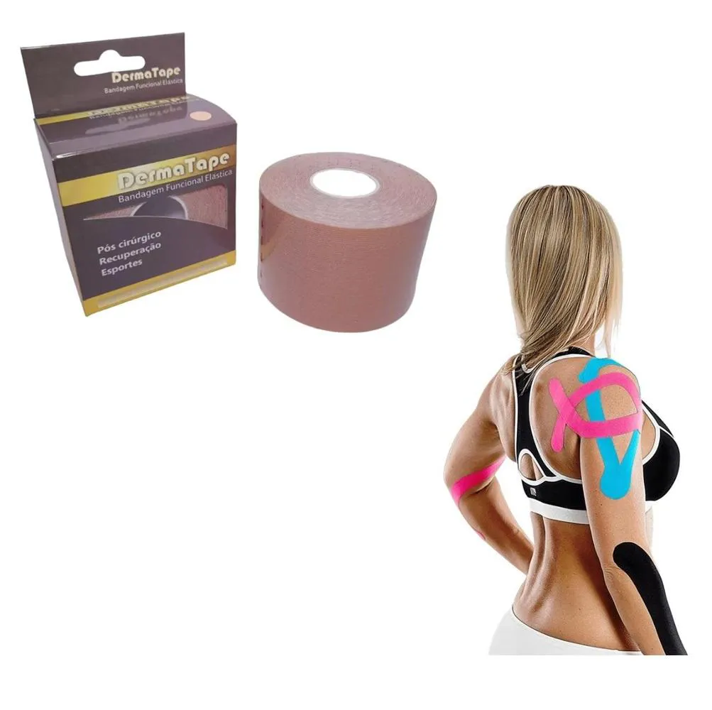 Kit 3 Bandagem Funcional Elástica Derma Tape Bioland Bege