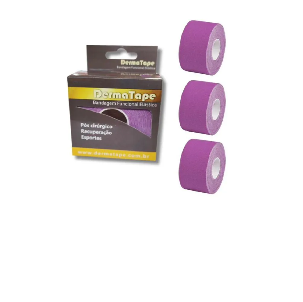 Kit 3 Bandagem Funcional Elástica Derma Tape Bioland Roxo