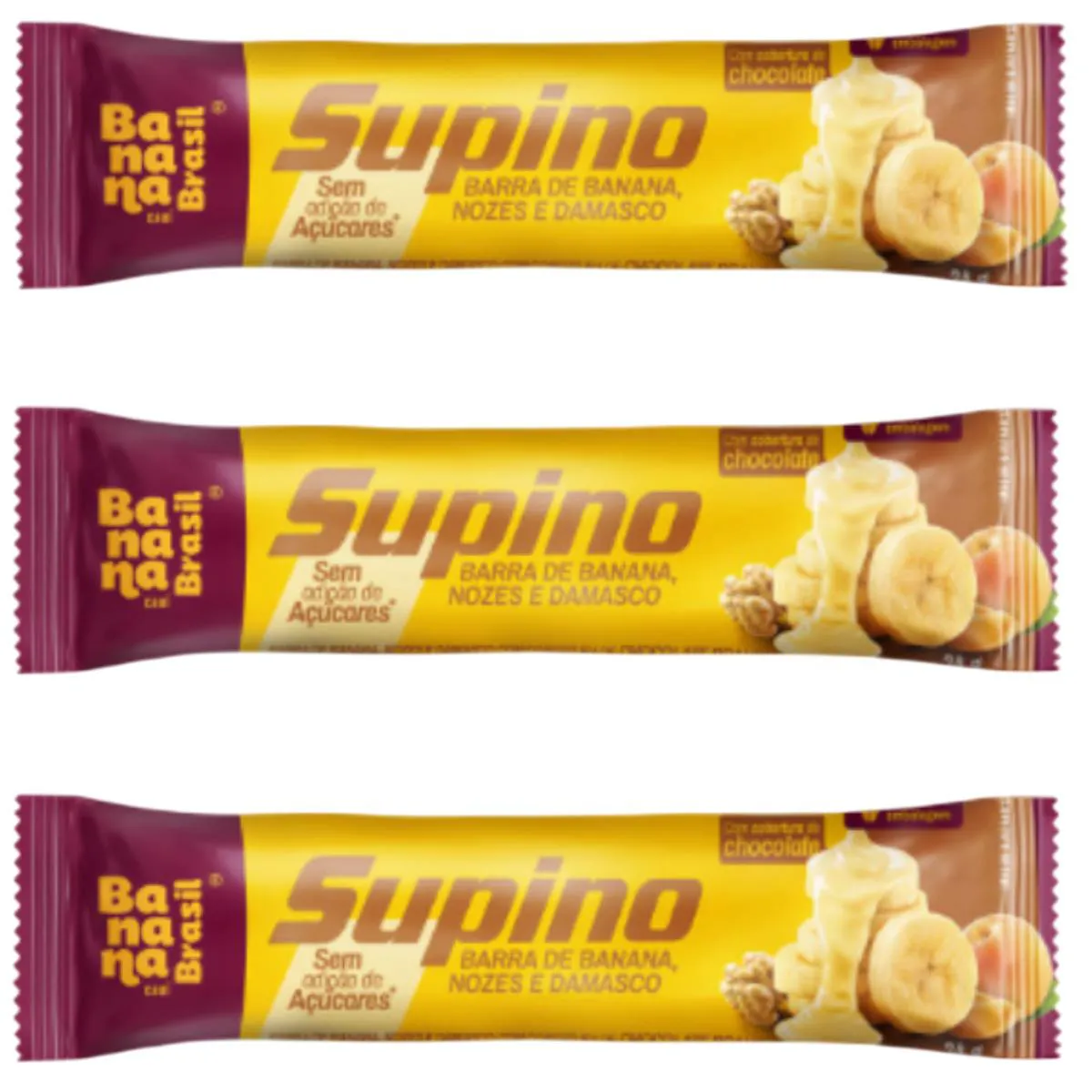 Kit 3 Barra de Banana com Nozes e Damasco com Chocolate Branco 24G Banana Brasil