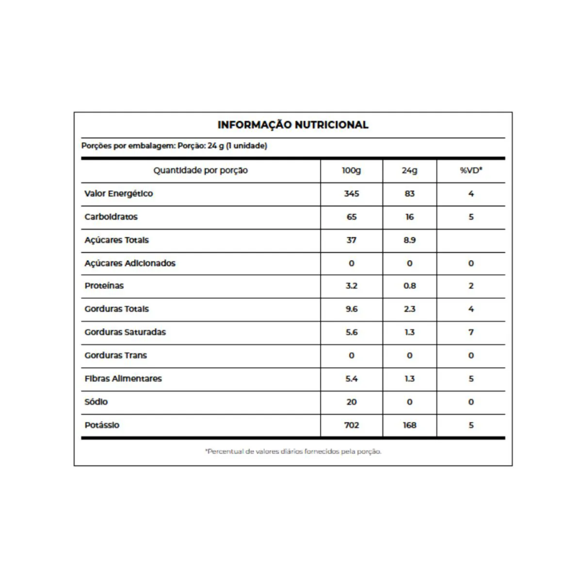 - Produzida pela Banana Brasil, referência em snacks criativos Ingredientes