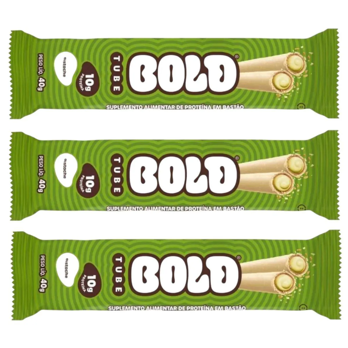Kit 3 Barra de Proteina 10G Tube Pistache 40G Snack Fit Bold