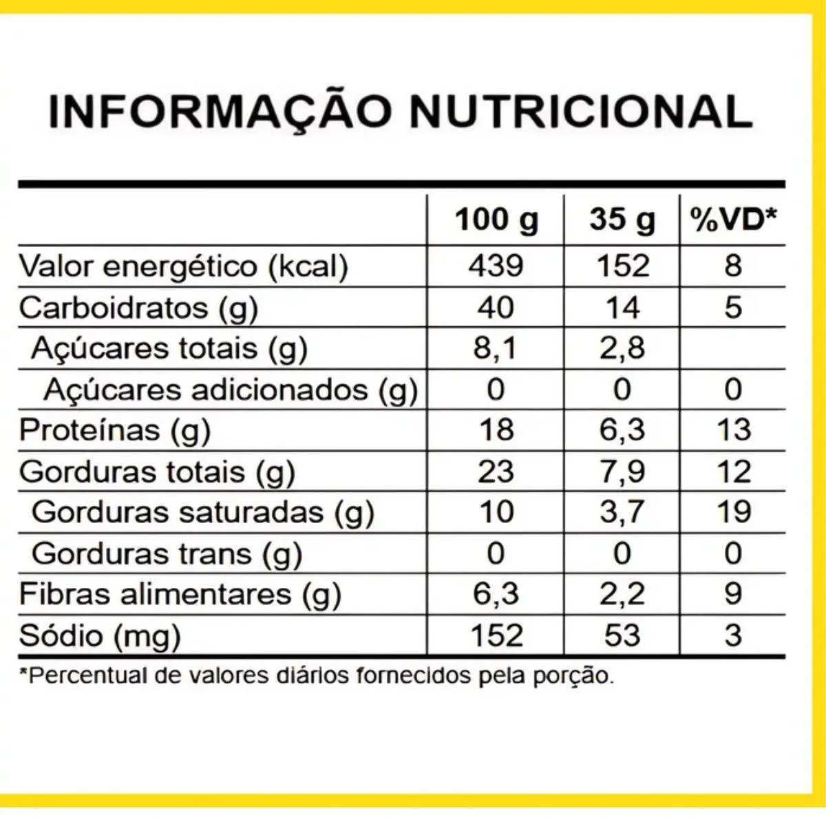 CONTÉM DERIVADOS DE AMENDOIM, DERIVADOS DE LEITE E DERIVADOS DE SOJA. PODE CONTER AMÊNDOAS, AVEIA, AVELÃS, CASTANHAS, CASTANHA DO BRASIL, CASTANHA DE CAJU, MACADÂMIA, NOZES, PECÃ, PISTACHE, OVOS E SOJA. CONTÉM LACTOSE. NÃO CONTÉM GLÚTEN.