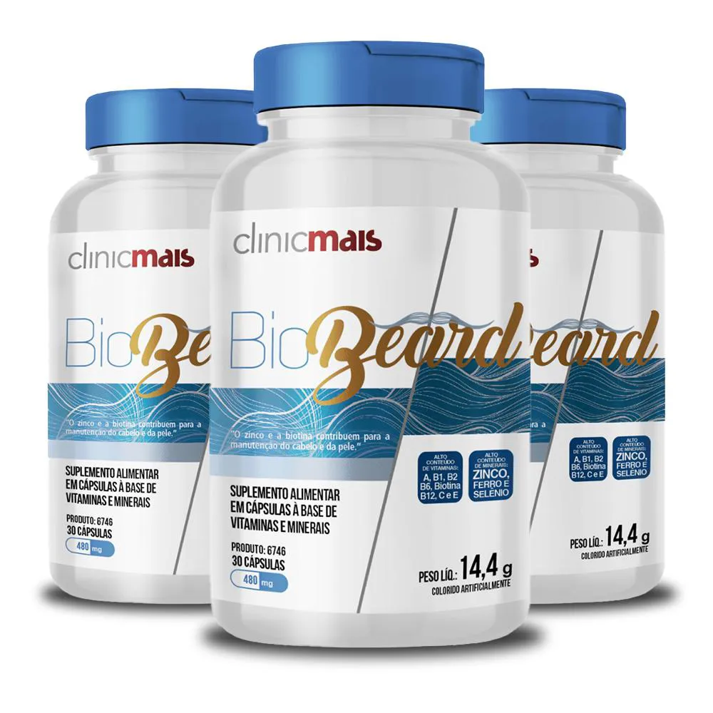 Kit 3 Biobeard Clinicmais 30 cápsulas 480mg
