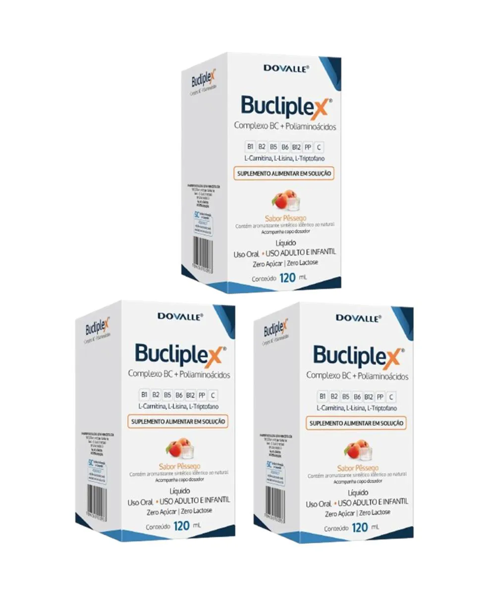 KIT 3 BUCLIPLEX SOLUçãO 120ML SABOR PêSSEGO - DOVALLE