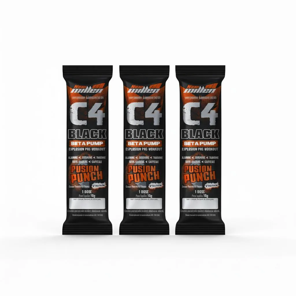 C4 BLACK FUSION – PRÉ-TREINO PARA ENERGIA, FOCO E DESEMPENHO MÁXIMO O C4 Black Fusion é um pré-treino de alta performance que combina ingredientes altamente concentrados para proporcionar uma experiência única. Formulado com Beta-Alanina, L-Arginina, Taurina e Cafeína, ele aumenta a energia, foco, vasodilatação e disposição, permitindo que você atinja o máximo desempenho em cada treino. Com a adição de Colina e um mix de vitaminas e minerais, o C4 Black Fusion também auxilia na recuperação muscular e no suporte cognitivo. Perfeito para quem busca resultados rápidos e eficazes, este pré-treino é oferecido em sachês práticos de 10g, fácil de preparar e consumir. Composição e Ingredientes: