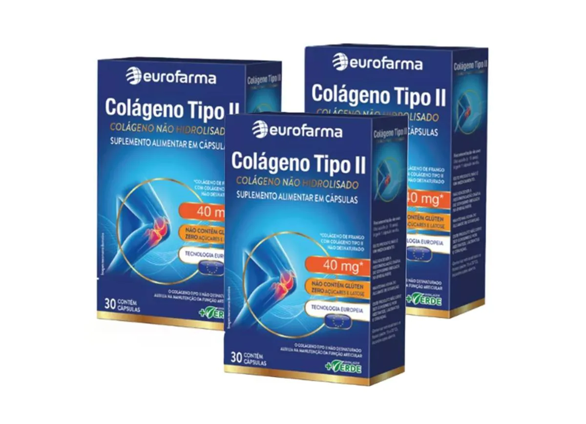 Kit 3 colágeno Tipo 2 Eurofarma 30 Cápsulas