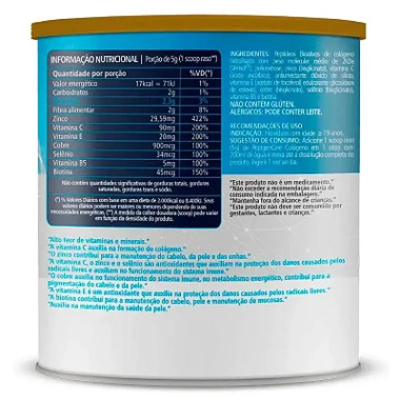 Kit 3 colágeno Verisol Clinic Mais 200g Neutro Alto teor de vitaminas e minerais. A vitamina c auxilia na formação do colágeno. O zinco contribui para a manutenção do cabelo, da pele e das unhas. A vitamina C, o zinco e o selėnio são antioxidantes que auxiliam na proteção dos danos causados pelos radicais livres e auxiliam no funcionamento do sistema imune. O cobre auxilia no funcionamento do sistema imune, no metabolismo energético, contribui para a pigmentação do cabelo e da pele. A vitamina e é um antioxidante que auxilia na proteção dos danos causados pelos radicais livres. A biotina contribui para a manutenção do cabelo, pele e manutenção de mucosas. Auxilia na manutenção da saúde da pele. INGREDIENTES: Peptídeos Bioativos de colágeno hidrolisado com peso molecular médio de 2kDa, polidextrose, zinco (bisglicinato), vitamina C (ácido ascórbico), antiumectante dióxido de silício, vitamina E (acetato de tocoferol) edulcorante glicosídeos de esteviol, cobre (bisglicinato), selênio (bisglicinato), vitamina B5 e biotina. NÃO CONTÉM GLÚTEN. RECOMENDAÇÕES DE USO INDICAÇÃO: Indivíduos com idade maior ou igual a 19 anos. SUGESTÃO DE CONSUMO: Adicione 5g (1 scoop ou 1 colher de sopa) em um copo com 200 ml de água e mexa até a dissolução completa do produto. Consuma logo após o preparo. Ingerir 1 vez ao dia. ESTE PRODUTO NÃO É UM MEDICAMENTO. NÃO EXCEDER A RECOMENDAÇÃO DIÁRIA DE CONSUMO INDICADA NA EMBALAGEM. MANTENHA FORA DO ALCANCE DE CRIANÇAS. ESTE PRODUTO NÃO DEVE SER CONSUMIDO POR GESTANTES, LACTANTES E CRIANÇAS.