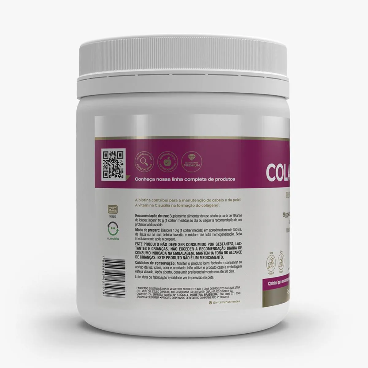 - Selo de Qualidade VLabor. Ingredientes: Sabor Abacaxi: Peptídeo de colágeno, premix de vitaminas e minerais [ácido ascórbico (vitamina c), nicotinamida (vitamina B3), acetato de DL-alfa-tocoferol (vitamina e), D-pantotenato de cálcio (vitamina B5), sulfato de manganês (manganês), cloridrato de piridoxina (vitamina B6), sulfato cúprico (cobre), acetato de retinol (vitamina a), ácido fólico (vitamina B9), D-biotina (vitamina H), colecalciferol (vitamina d) e cianocobalamina (vitamina B12)], ácido ortosilícico estabilizado em cloreto de colina (silício), aroma idêntico ao natural de abacaxi, acidulante ácido cítrico, espessante goma xantana, edulcorantes glicosídeos de esteviol (estévia) e taumatina e antiumectante dióxido de silício. NÃO CONTÉM GLÚTEN.
