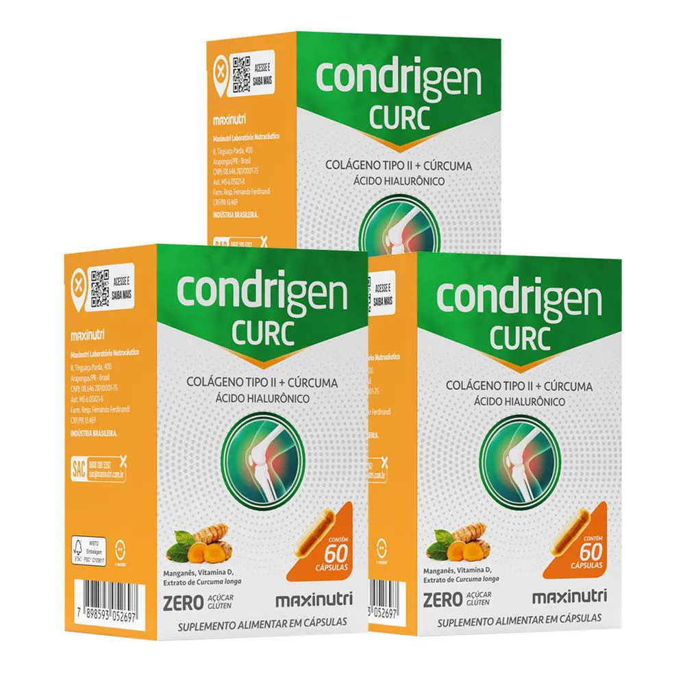 Kit 3 Condrigen Curc Colágeno Tipo 2 + Cúrcuma e Ácido Hialurônico 60 Cáps Maxinutri