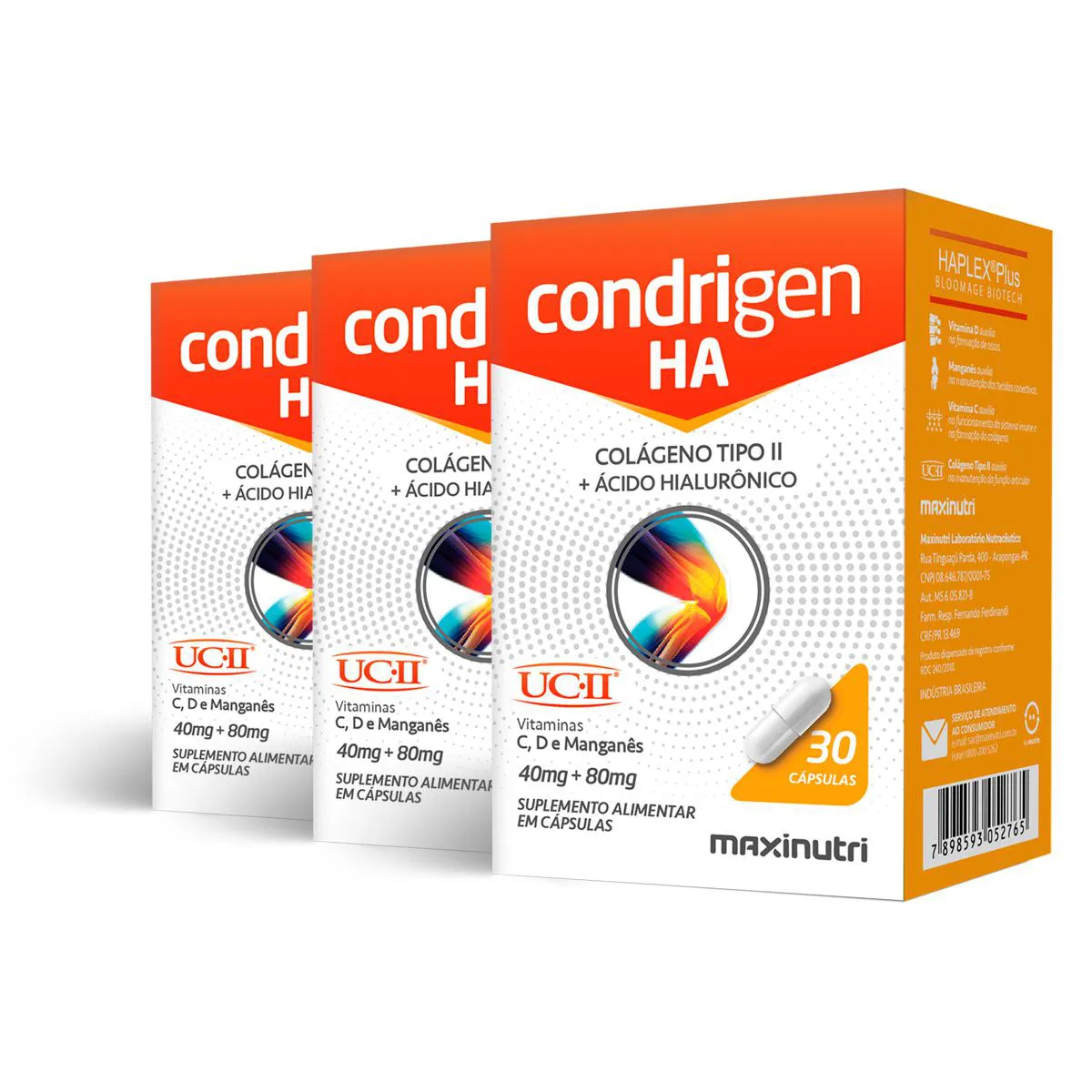 Kit 3 Condrigen Ha Colágeno Tipo 2 Maxinutri 30 Cápsulas