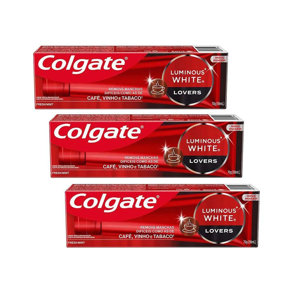 Kit 3 Cremes Dentais Colgate Luminous White Lovers Café 70G