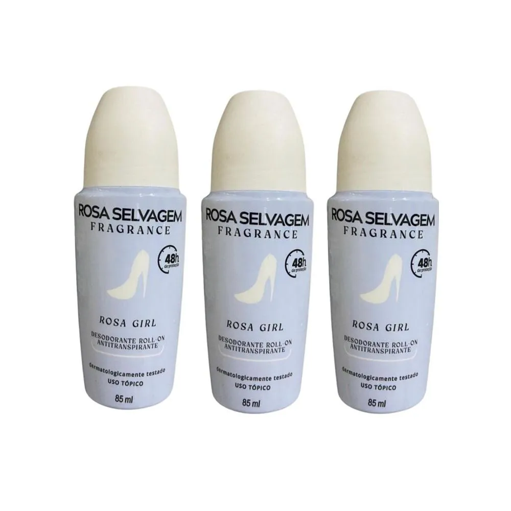 Kit 3 Desodorante Roll-On Rosa Girl 85Ml Rosa Selvagem