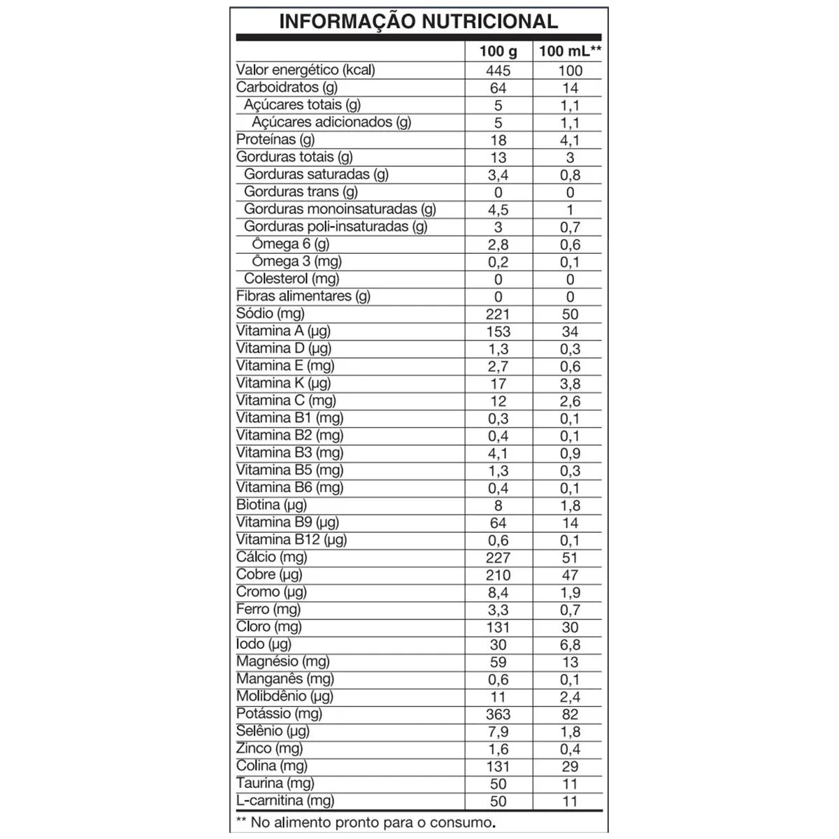 - Contém 18g de proteína por 100g de produto.