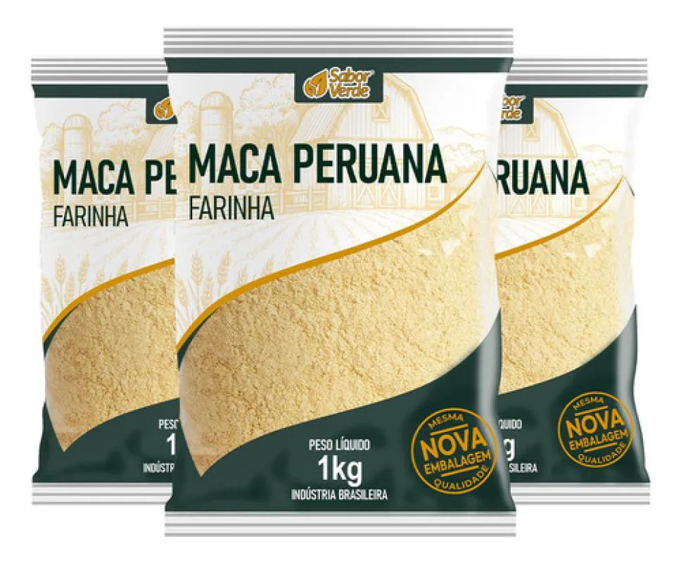 Kit 3 Farinha de Maca Peruana 1Kg - Sabor Verde