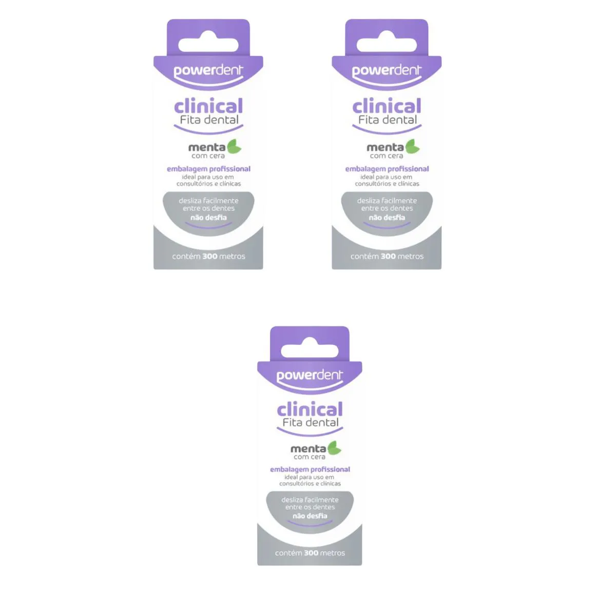 Kit 3 Fita Dental Clinical Encerada Menta 300M - Powerdent