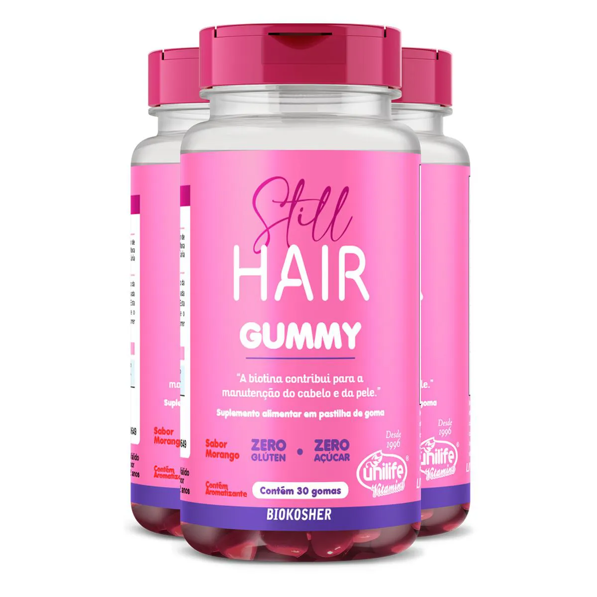 Kit 3 Gummy Hair Still Sabor Morango Unilife 30 Gomas