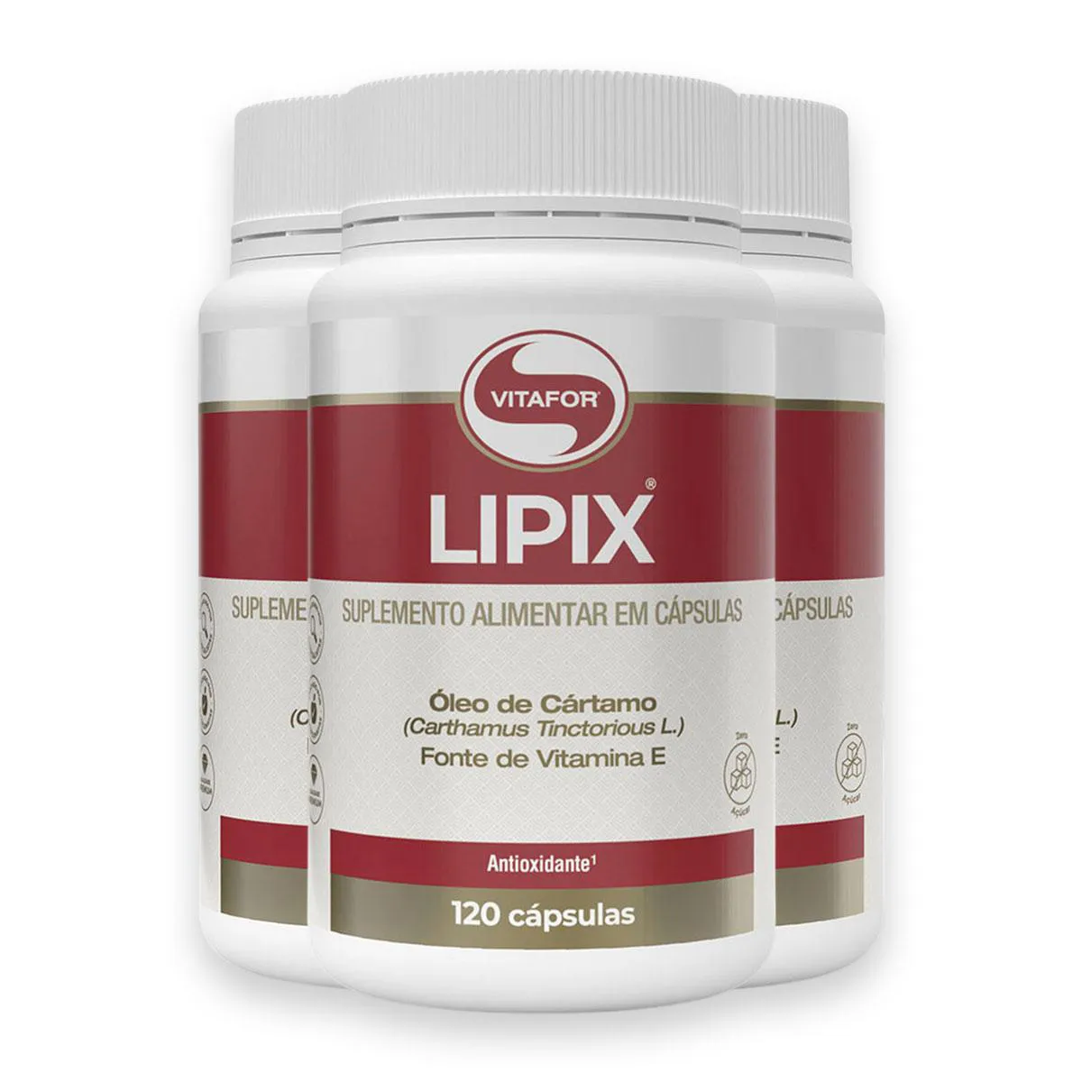 Kit 3 Lipix Vitafor Óleo de Cártamo 120 Cápsulas LIPIX é um produto à base de Óleo de Cártamo (Carthamus tinctorius), uma planta de origem asiática que possui em sua composição os ácidos graxos essenciais: ácido linoléico (ômega 6), ácido oleico (ômega 9) e vitamina e. Diferenciais: - Praticidade no formato cápsulas.