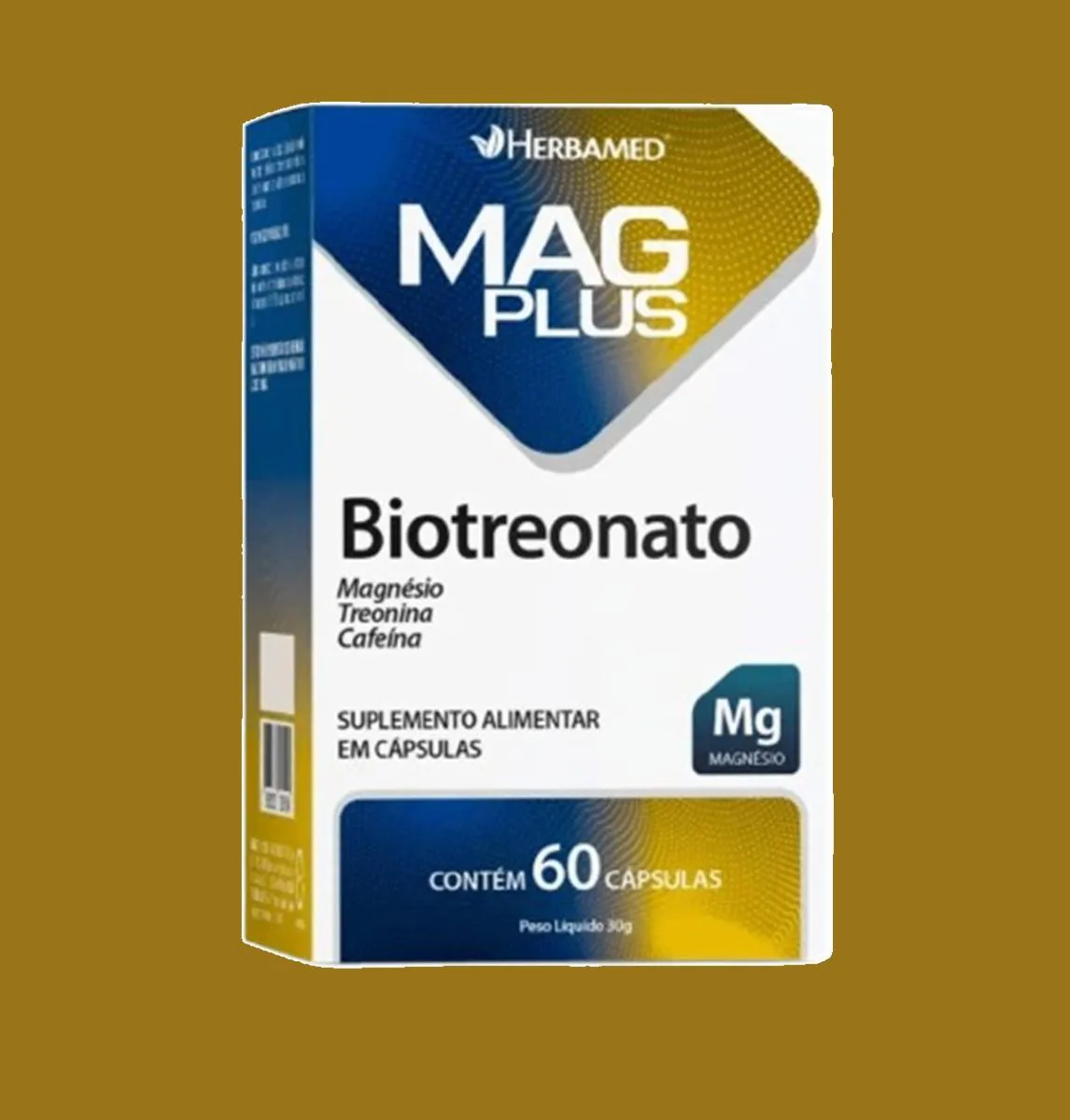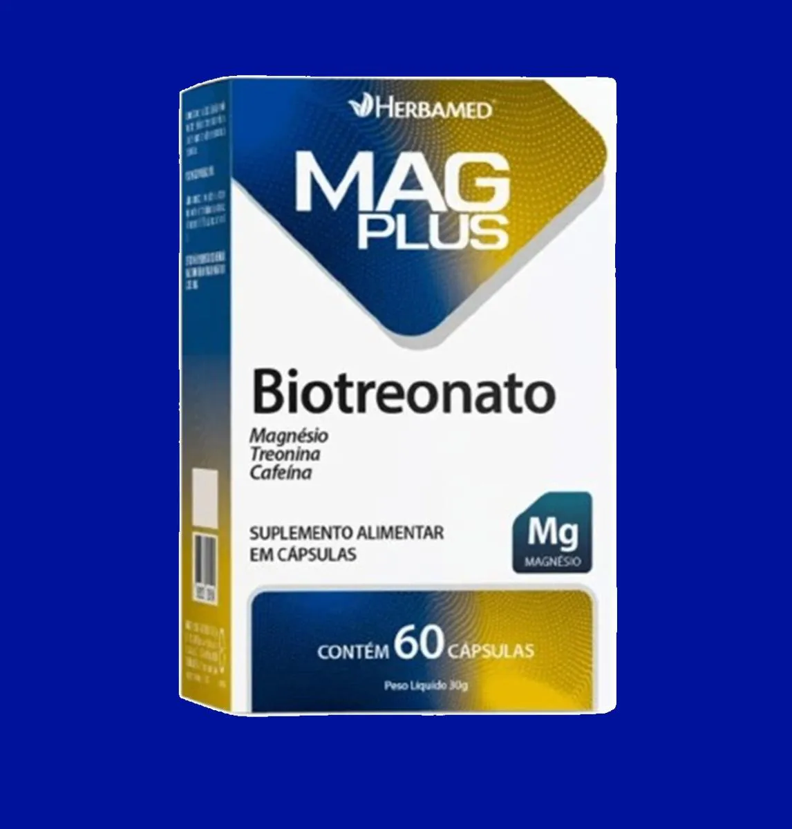 Mag Plus Biotreonato com 60 Cápsulas - Herbamed é um suplemento alimentar que combina magnésio bisglicinato com L-treonina, desenvolvido para melhorar o desempenho físico, formação de ossos e dentes e contribuir para o metabolismo energético