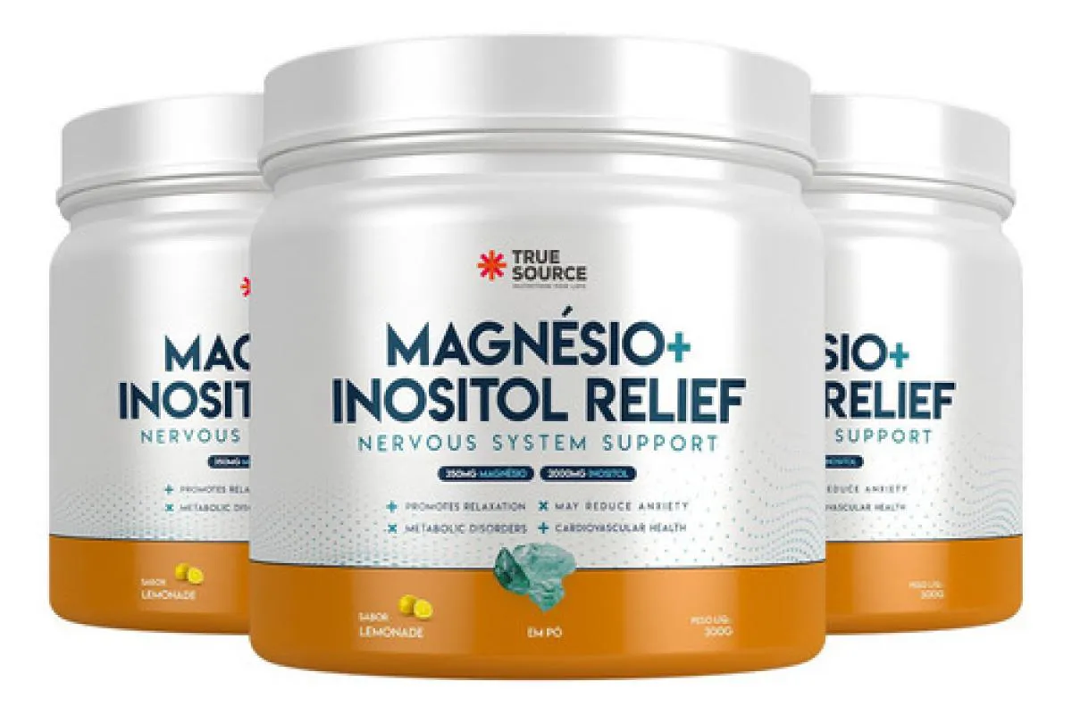O Magnésio + Inositol Relief 1.0 da True Source é um suplemento em pó que combina dois nutrientes essenciais para o bem-estar mental e corporal: o magnésio na forma de bisglicinato e o inositol. A versão Lemonade (sabor limão) oferece uma experiência cítrica e refrescante, mantendo uma fórmula clean-label, livre de glúten, lactose e açúcar. A marca posiciona este produto como uma solução para auxiliar o equilíbrio emocional, a qualidade do sono, a função neuromuscular e o metabolismo energético.Composição / Ingredientes