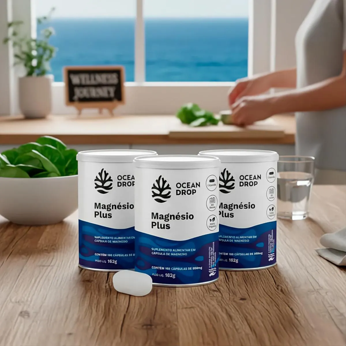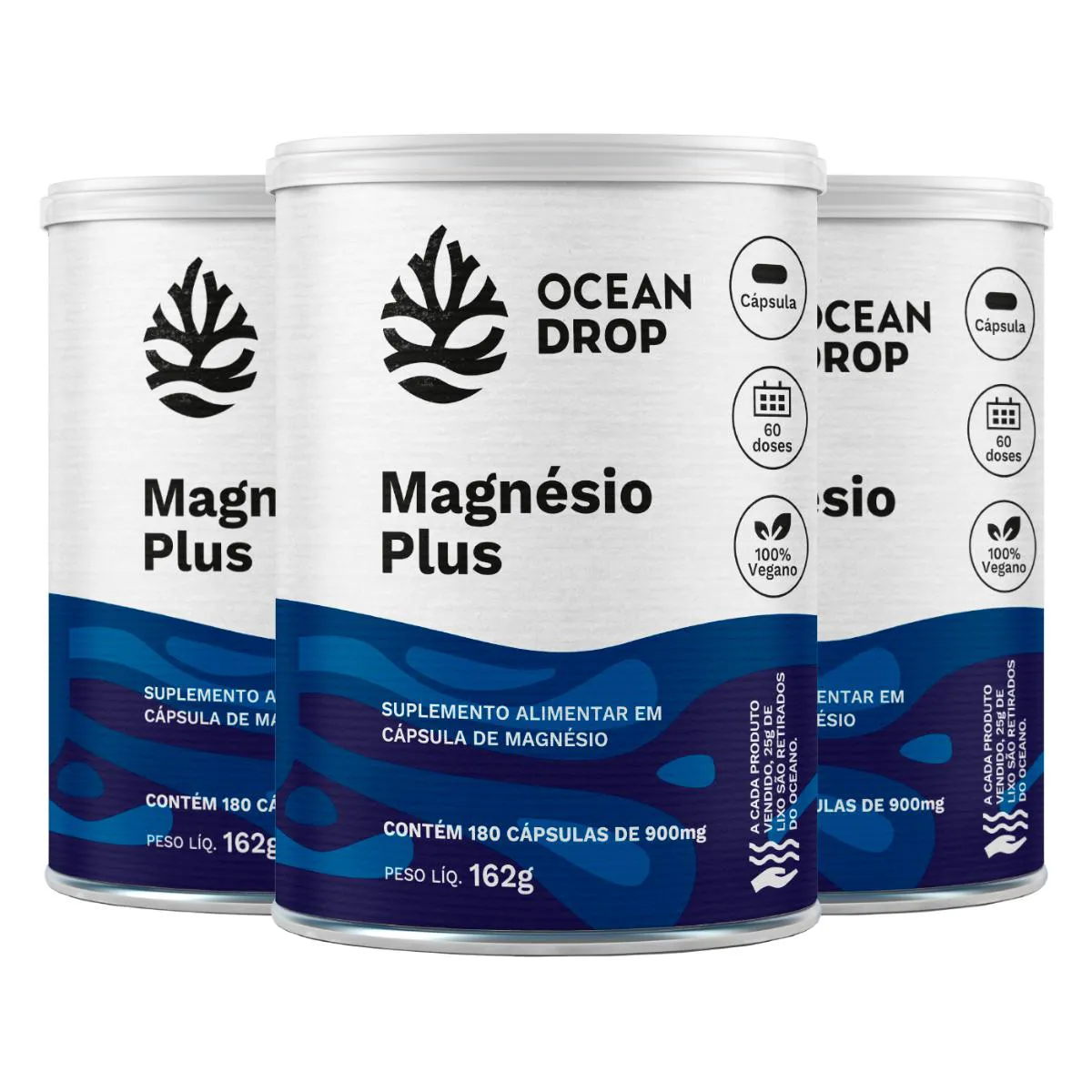 Kit 3 Magnésio Plus 4 Magnésios Ocean Drop Vegano 180 Cápsulas