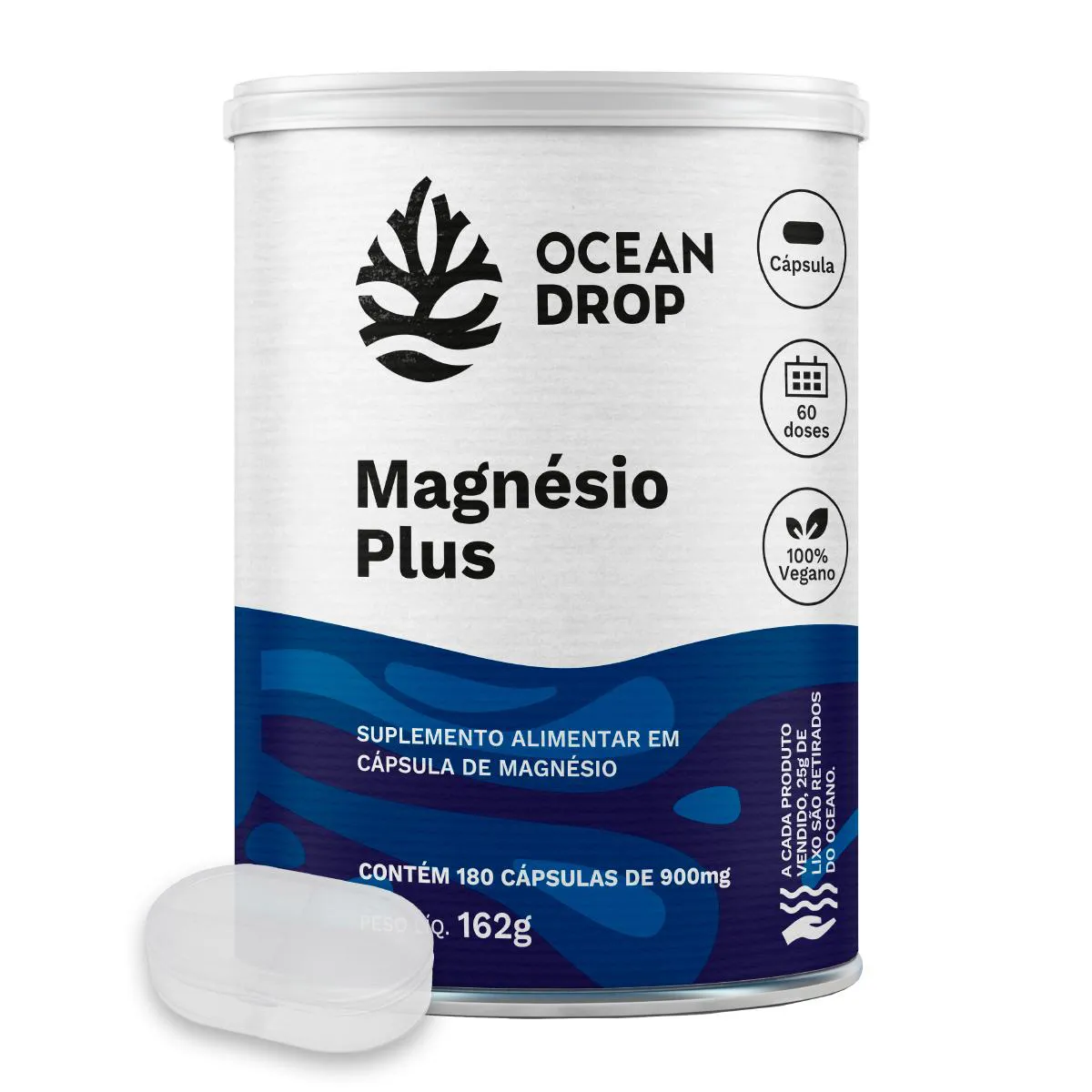Kit 3 Magnésio Plus Ocean Drop - 180 cápsulas de 900mg cada + porta capsulas Composição: