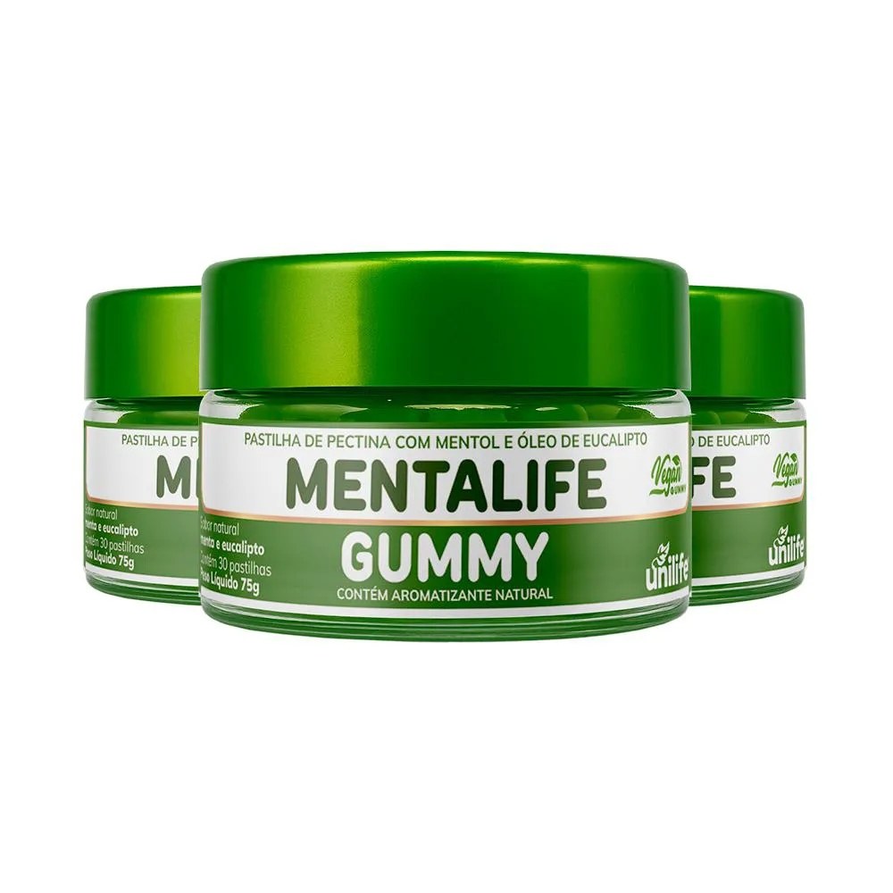 Kit 3 Mentalife Gummy Unilfe Menta e Eucalipto 30 Gomas