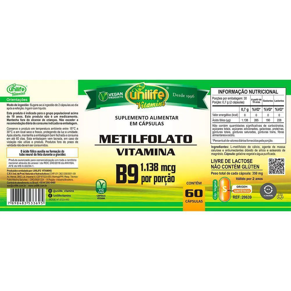 Kit 3 Metilfolato Unilife 60 Cápsulas 350Mg