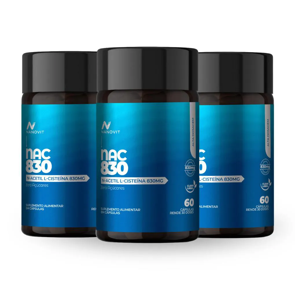 Kit 3x NAC (N-Acetil L-Cisteína) - 830mg - 60 cápsulas – Nanovit O NAC da Nanovit é um suplemento desenvolvido para auxiliar na proteção celular e no equilíbrio do organismo.
