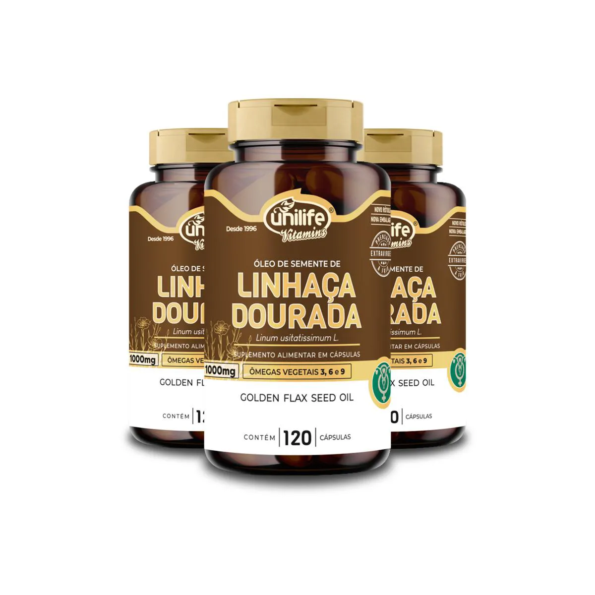 Kit 3 Óleo de Semente de Linhaça Dourada Unilife 120 Cápsulas