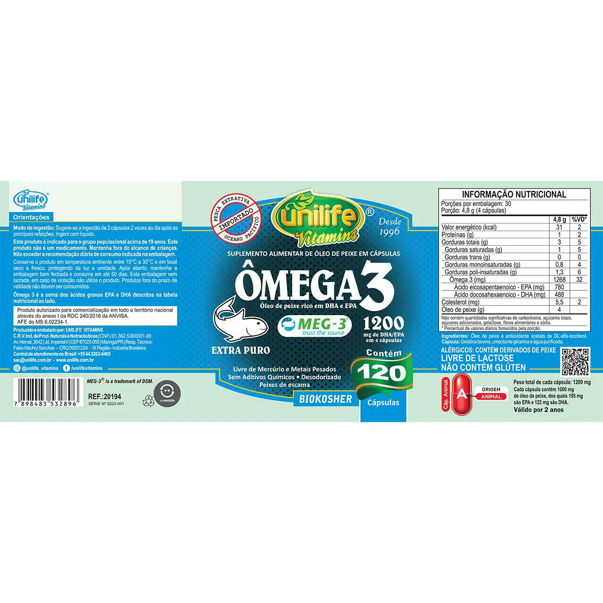 Kit 3 Ômega 3 Óleo de Peixe Unilife 120 Cápsulas 1200Mg