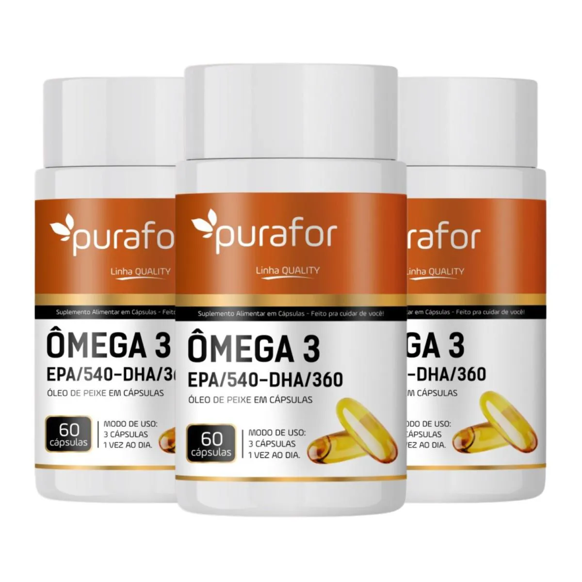 Kit 3 Ômega 3 Ultraconcentrado 1350Mg Epa Dha Óleo de Peixe Puro – 60 Cápsulas Purafor
