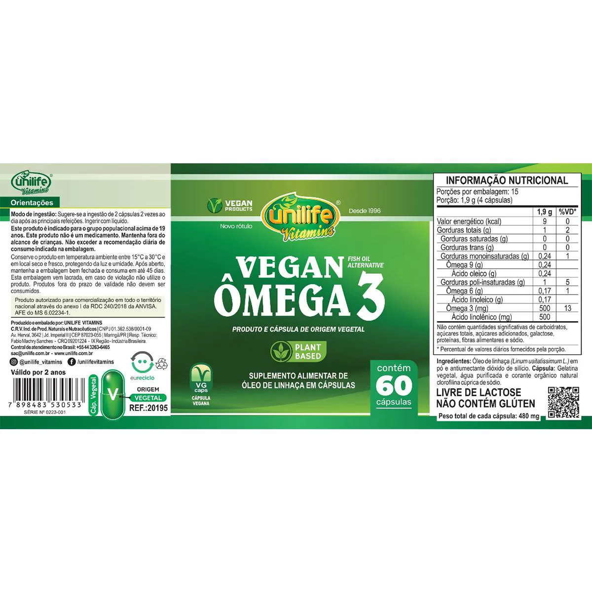 Kit - 3 Ômega 3 Vegetal Unilife 60 cápsulas O que é o Vegan Ômega 3 da Unilife?